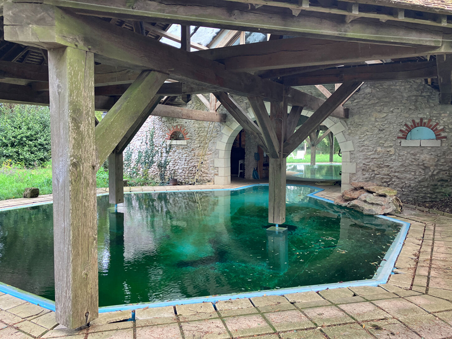 Ouvert sur une piscine d'architecture octogonale original couverte