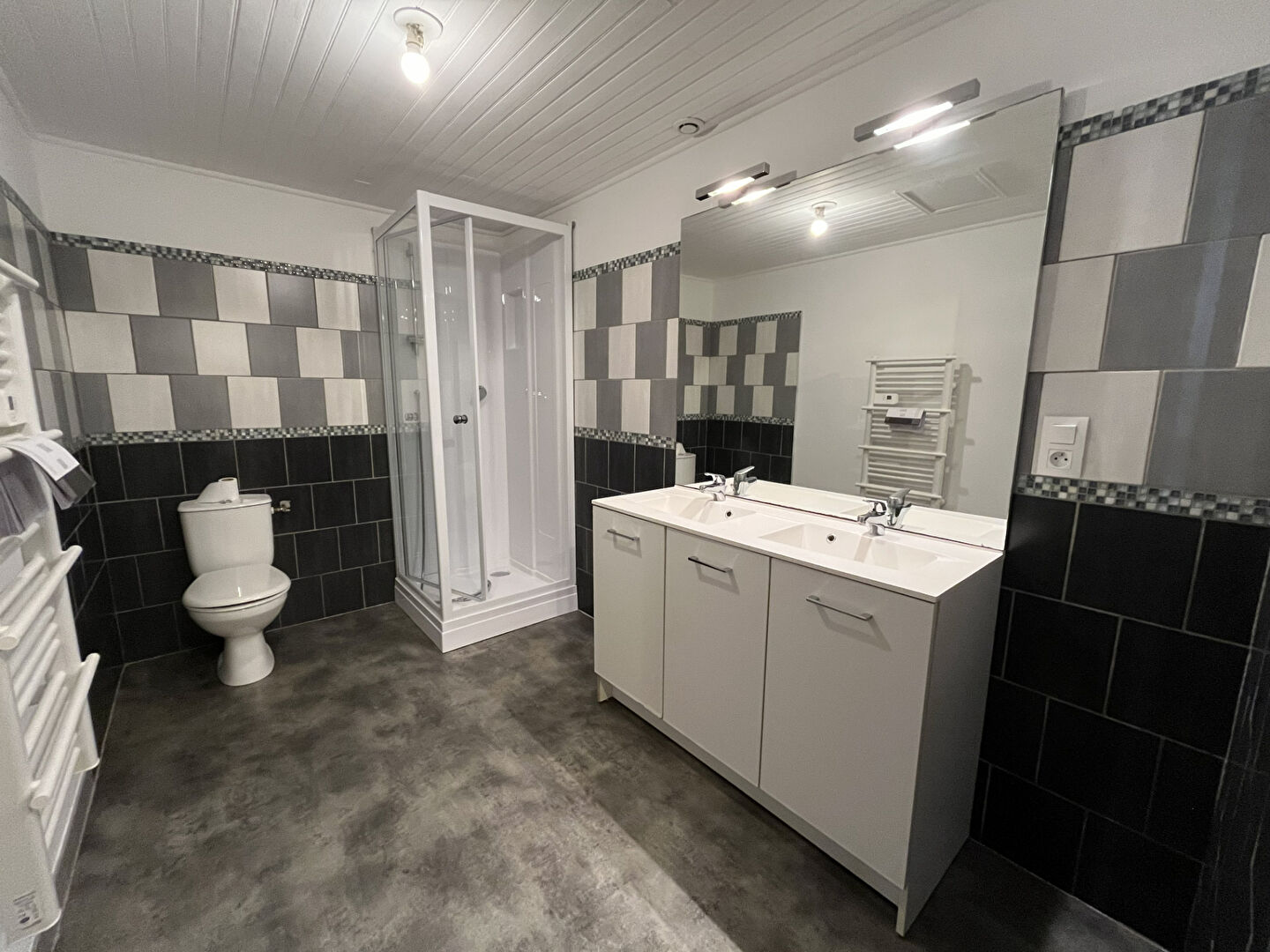 Dégagement, deux chambres, salle de d'eau avec double vasque et WC