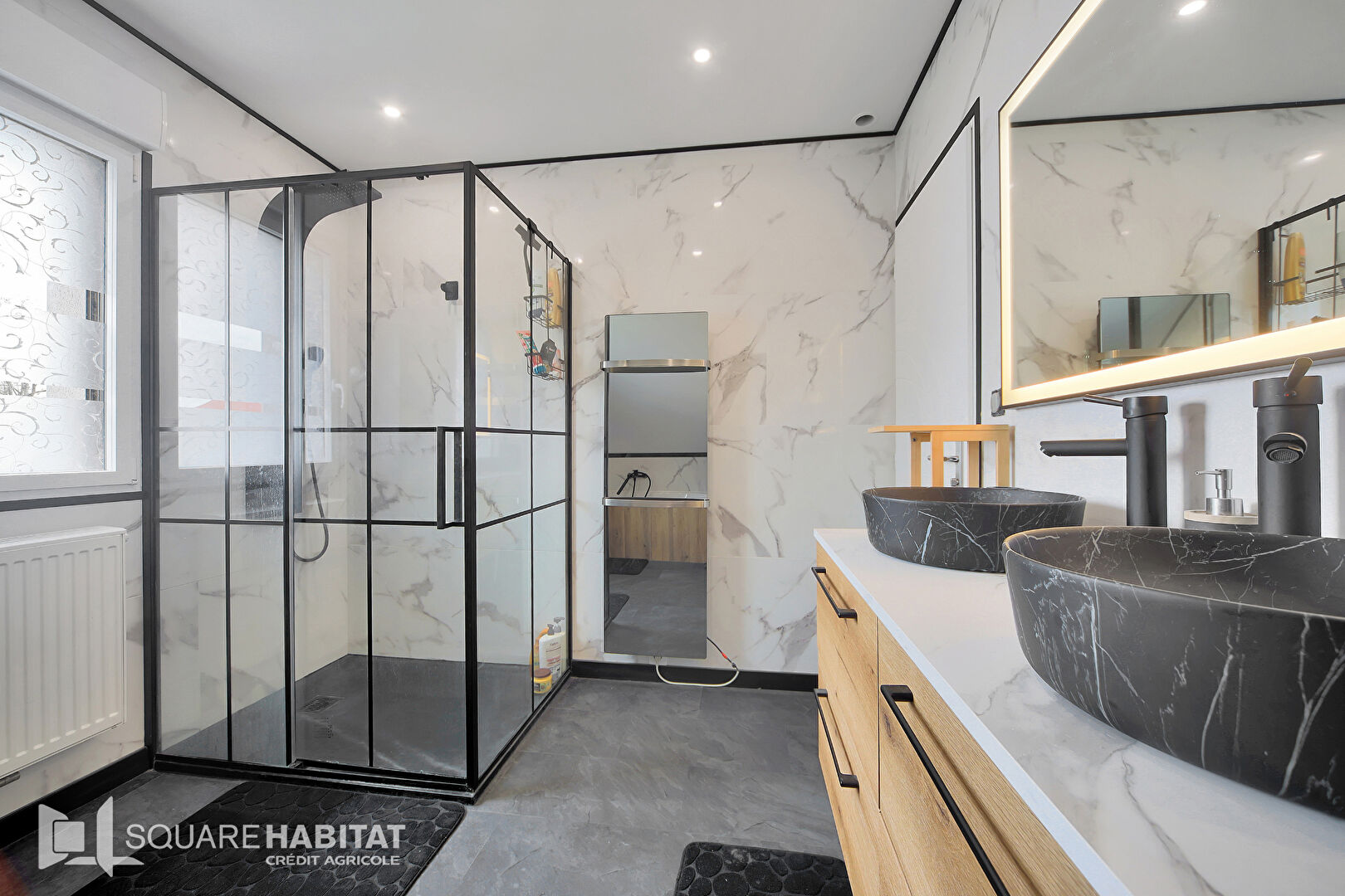 Jardin clos avec terrasse exposée Sud-Est. Garage + Stationnement privatif pour plusieurs véhicules. Menuiseries ALU et volets roulants. Chauffage gaz.