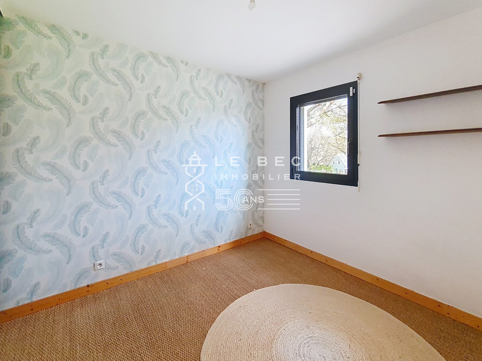 Une jolie contemporaine de 2006 située à Kerdual, dans une impasse au calme. Édifiée sur un terrain de plus de 1100 m², elle se compose, au rez-de-chaussée, d'un séjour-salon lumineux avec une cuisine ouverte, aménagée et équipée, le tout donnant accès à une terrasse exposée plein sud et à une piscine chauffée. Vous trouverez également deux chambres et une salle de bains.