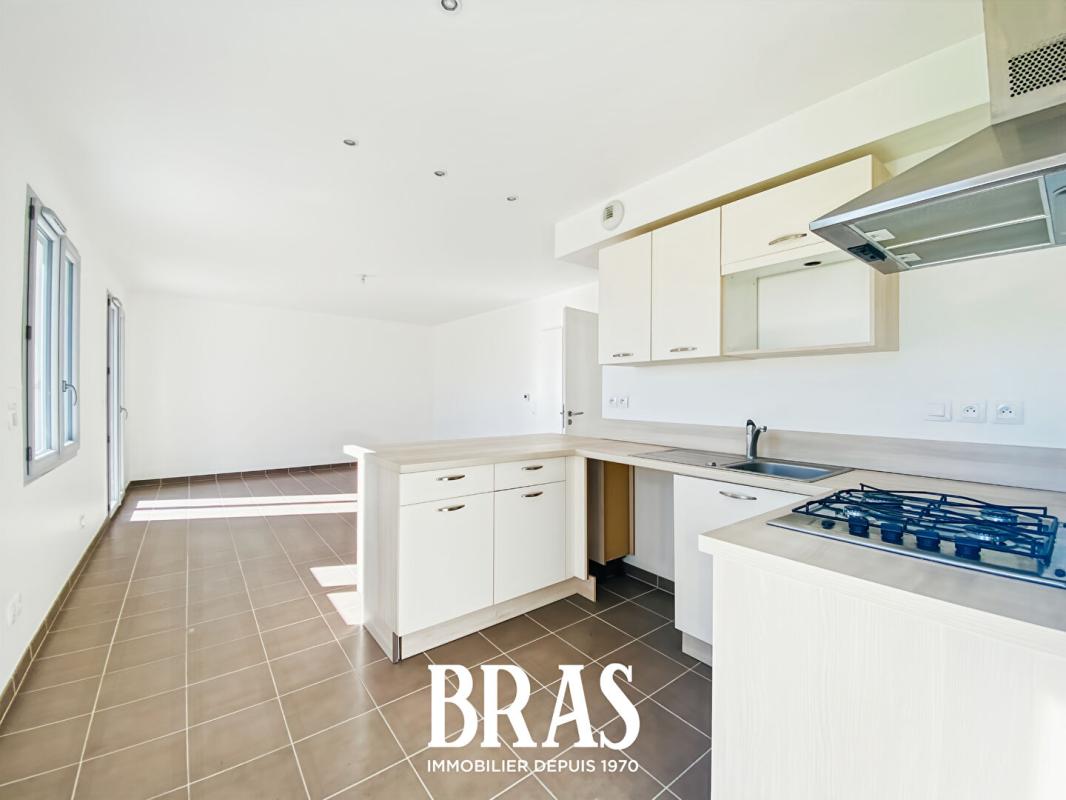 Une belle pièce de vie conviviale, baignée de lumière, avec cuisine ouverte aménagée et équipée