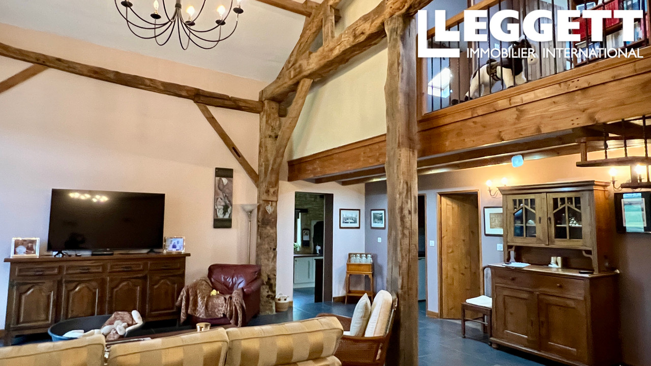La maison principale, une grange rénovée lumineuse de 205 m² comprent 5 chambres. Elle dispose d'un spacieux salon/salle à manger, d'une grande cuisine/salle à manger, et de caractéristiques de charme telles que poutres et pierres apparentes .