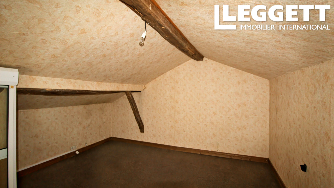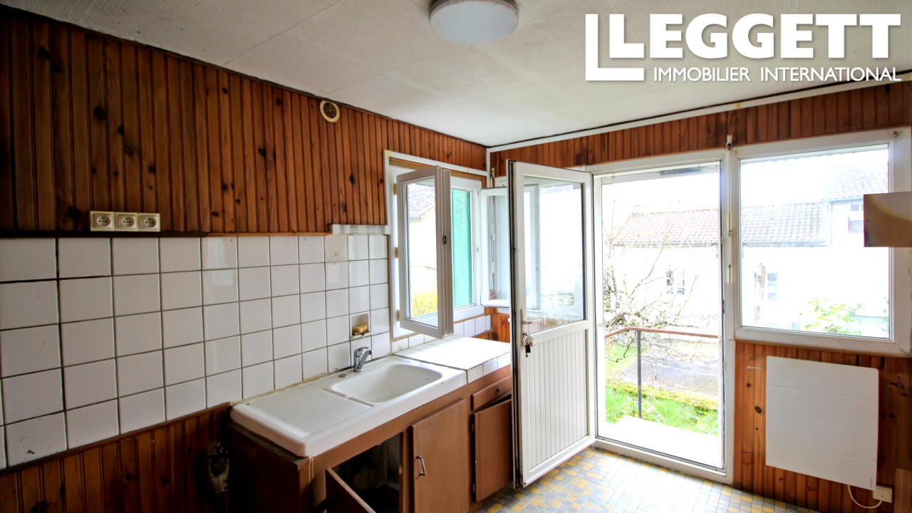 A43448MP86 - Située au centre de Montmorillon, à quelques pas de toutes les commodités principales. La propriété dispose du chauffage central électrique, d'un raccordement au tout-à-l'égout et de double vitrage. L'entrée de la maison donne directement sur la cuisine (9 m²) qui mène au salon (12 m²) équipé d'un escalier en colimaçon menant à l'étage supérieur. Depuis le salon, on accède à la première chambre (14 m²) qui dispose d'une porte donnant sur la salle d'eau et les toilettes.