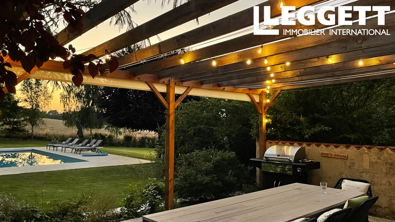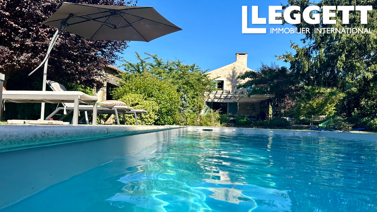 A43101DOW85 - Une superbe maison en pierre à Bazoges-en-Pareds, qui conserve son charme historique tout en offrant un luxe moderne. Profitez d'une piscine à hauteur des yeux, d'une pergola avec barbecue et de jardins arborés. À l'intérieur, de hauts plafonds, des sols en dalles de pierre, une cuisine haut de gamme avec îlot pour le petit-déjeuner, un poêle à bois et des finitions artisanales ont créé cette maison chaleureuse et élégante. Des chambres modulables, des salles de bains élégantes et des poutres apparentes ajoutent du caractère à l'ensemble. Située dans un village animé près de Fontenay-le-Comte et de La Châtaigneraie, avec le Puy du Fou et les plages de l'Atlantique à proximité, cette maison vous offre un style de vie champêtre français parfait.