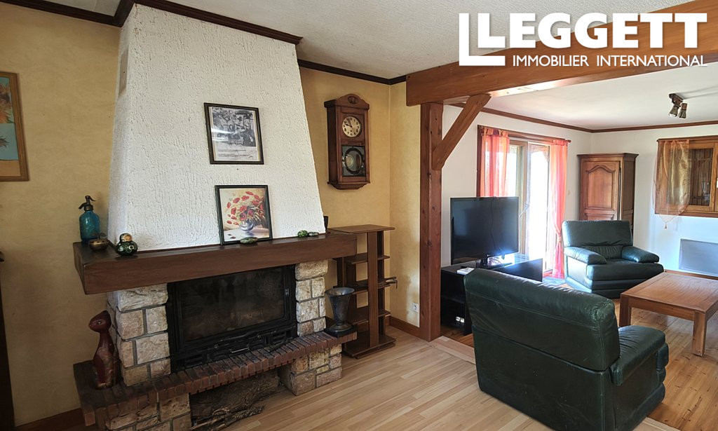 La pièce de vie chaleureuse comprend un séjour avec cheminée insert ainsi qu'un salon doté d'une baie vitrée ouvrant sur l'extérieur. La cuisine donne accès à une terrasse couverte, idéale pour profiter des beaux jours.