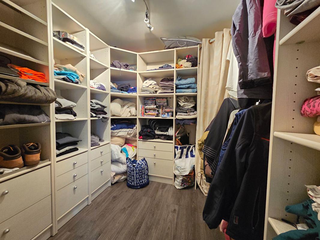 Au rez-de-chaussée vous trouverez une belle pièce de vie lumineuse avec cheminée insert et accès au jardin, une cuisine dinatoire indépendante, un dégagement avec nombreux placards de rangement qui dessert d'une part la salle de bains avec toilettes et d'autre part la chambre avec grand dressing aménagé.