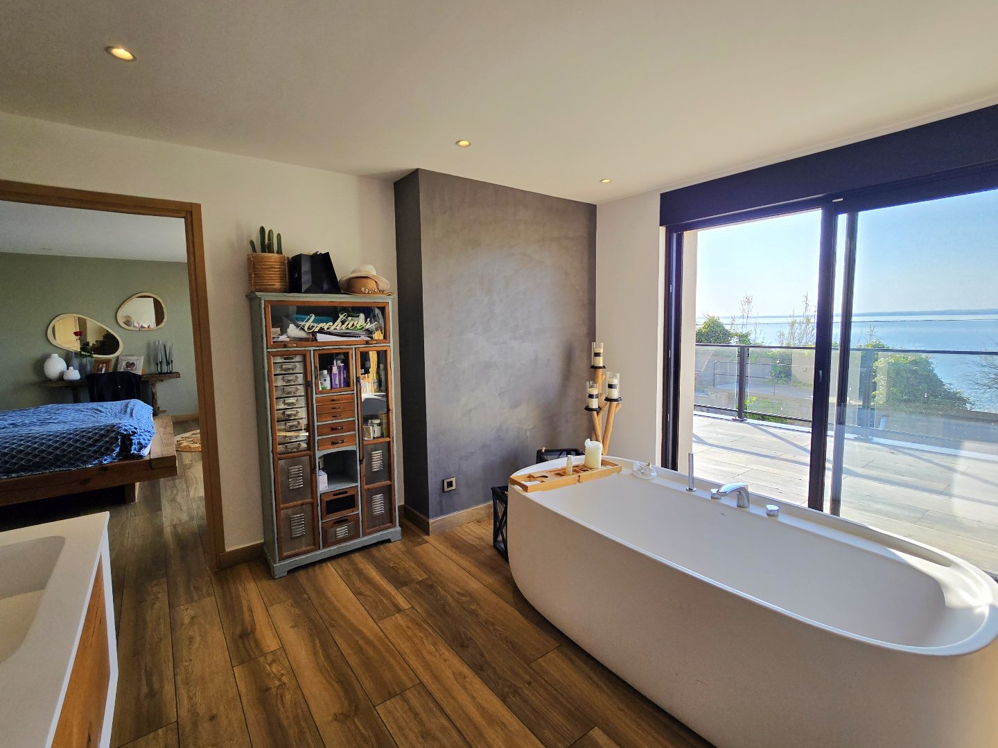 Le rez-de-chaussée propose également une somptueuse suite parentale avec dressing, une chambre d'amis et un bureau, offrant confort et intimité.