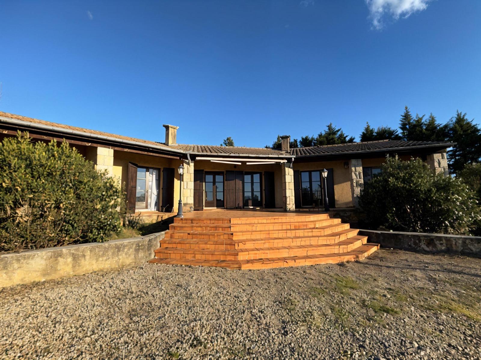 Villa d'architecte construite dans les années 80 d'une surface de 157 m² le tout sur 2000 m² de terrain avec une vue dégagée comprenant :