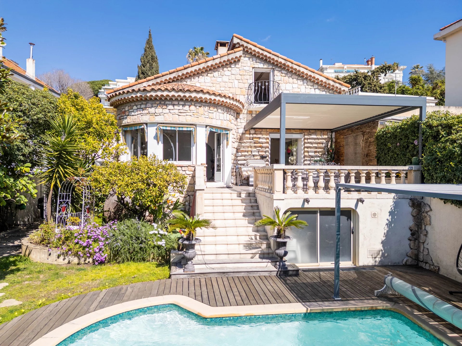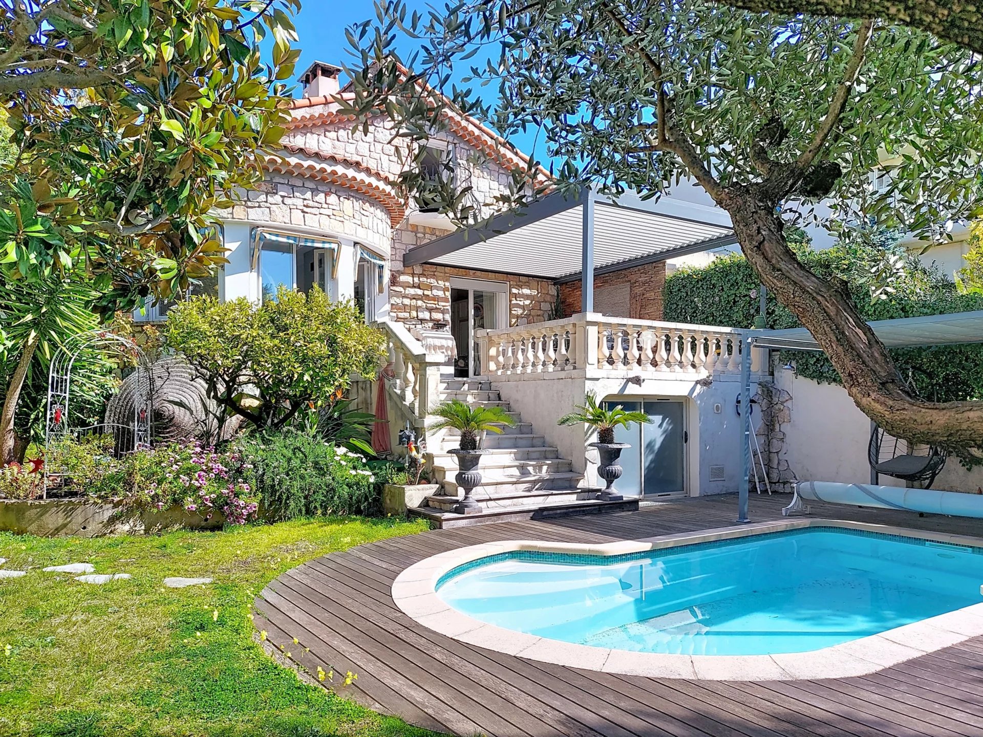 Le cœur de la maison : un bel espace de vie de 51 m², lumineux, ouvert sur une grande terrasse et un jardin d'environ 300m² avec piscine.. l’endroit parfait pour profiter des journées niçoises, recevoir, ou simplement ralentir le rythme.
