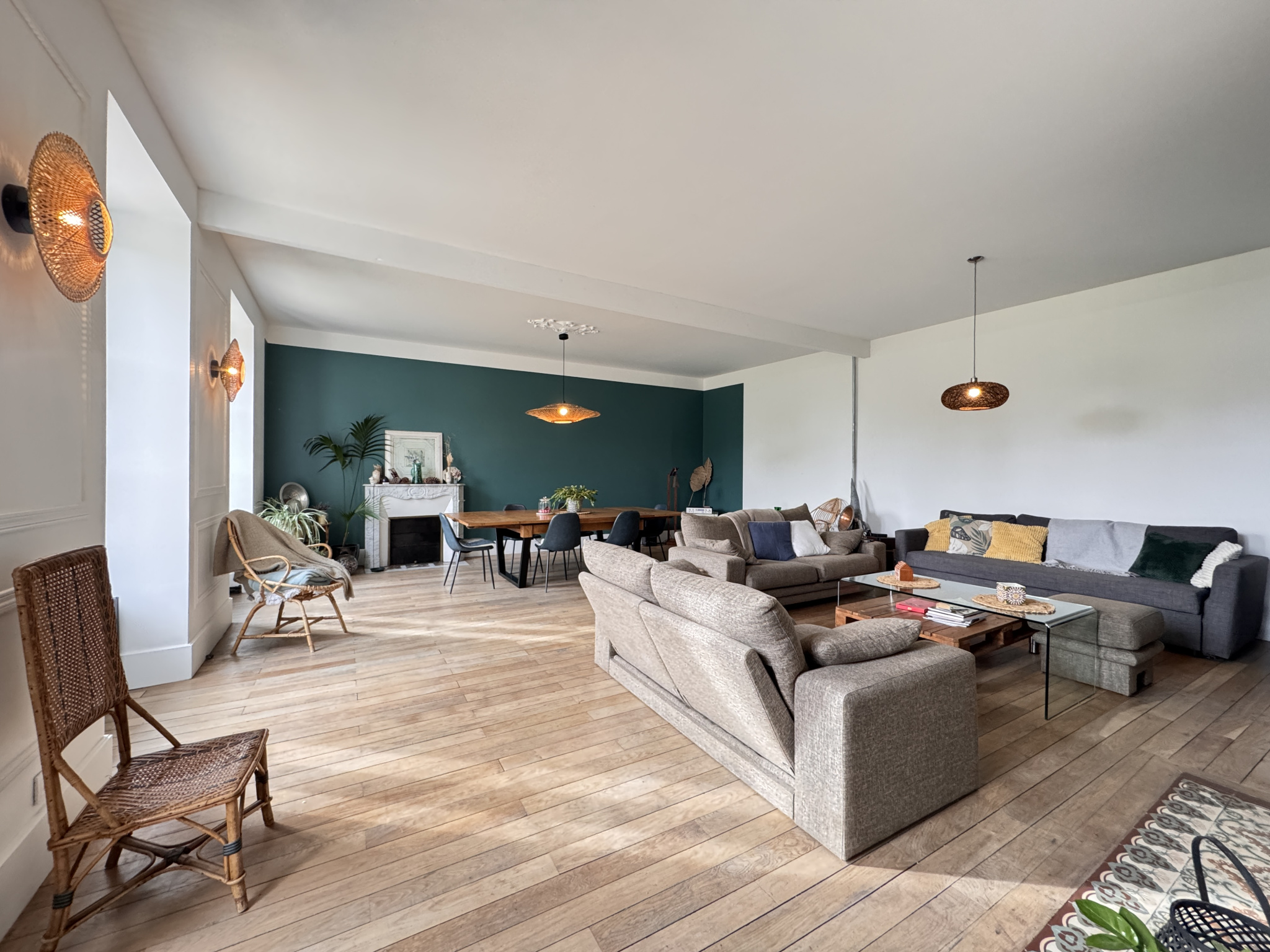 Proche de MONTGUYON (17) - Cette belle propriété s'étend sur plus de 3,3 hectares d'un seul tenant. Joliment proportionnée, la demeure principale du XIXo offre environ 270 m2 habitables. Ses beaux volumes orientés au Sud raisonnent d'une grande clarté. Subtilement rénovée, dans un style élégant, la bâtisse fait la part belle aux matières et aux éléments anciens. Vaste pièce de vie avec cheminée, superbe cuisine équipée et chambre en suite. L'étage propose quatre chambres aux volumes généreux et salle de bains. Là encore, la lumière omniprésente met en valeur les matériaux nobles. Le volume du grenier au deuxième étage, sous la belle charpente, est un véritable atout. On pourra aménager différents espaces, façonner de nouvelles pièces ou concevoir un espace de vie ample et structuré. Cet ensemble est complété par une ancienne maison à rénover idéale pour créer un gîte. Adossée au bâtiment en pierre, l'agréable piscine s'intègre parfaitement à ce cadre reposant. Cette partie domine les prairies environnantes et une rivière. Belle grange en pierre de 115 m2 au sol au volume impressionnant. Elle peut accueillir de multiples projets. Luxuriant, le parc clos en grande partie est une passerelle vers l'évasion. La bambouseraie apporte une note exotique. La situation, au coeur de la nature, sans voisin et proche des services est exceptionnelle.