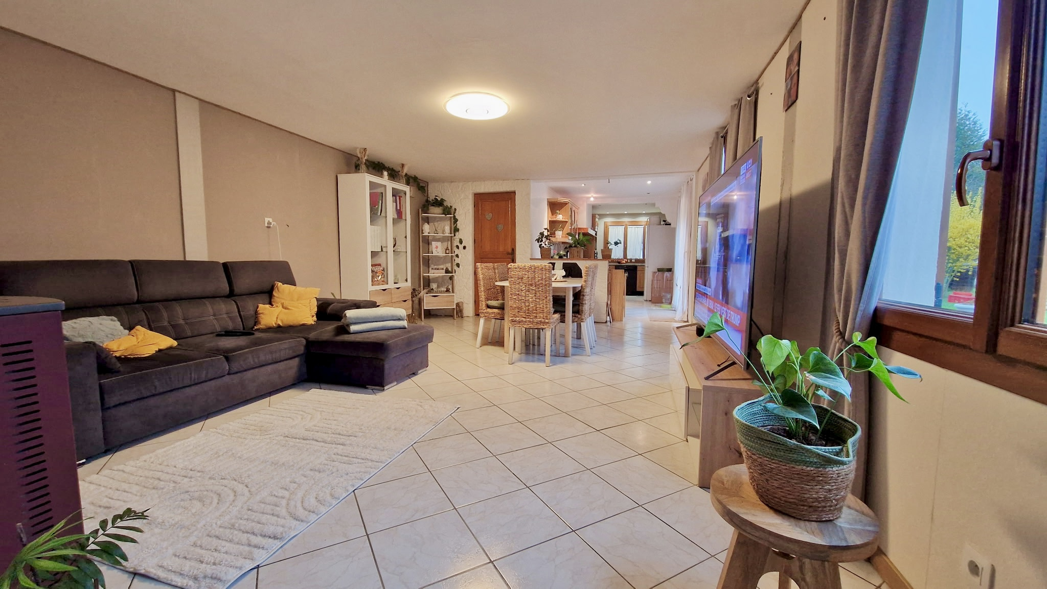 - au rez-de-chaussée : une entrée, un séjour double avec poêle à granulés, une cuisine ouverte aménagée et équipée, une salle d'eau avec WC. Lingerie de 27m2 (possibilité de créer une chambre en plain-pied)