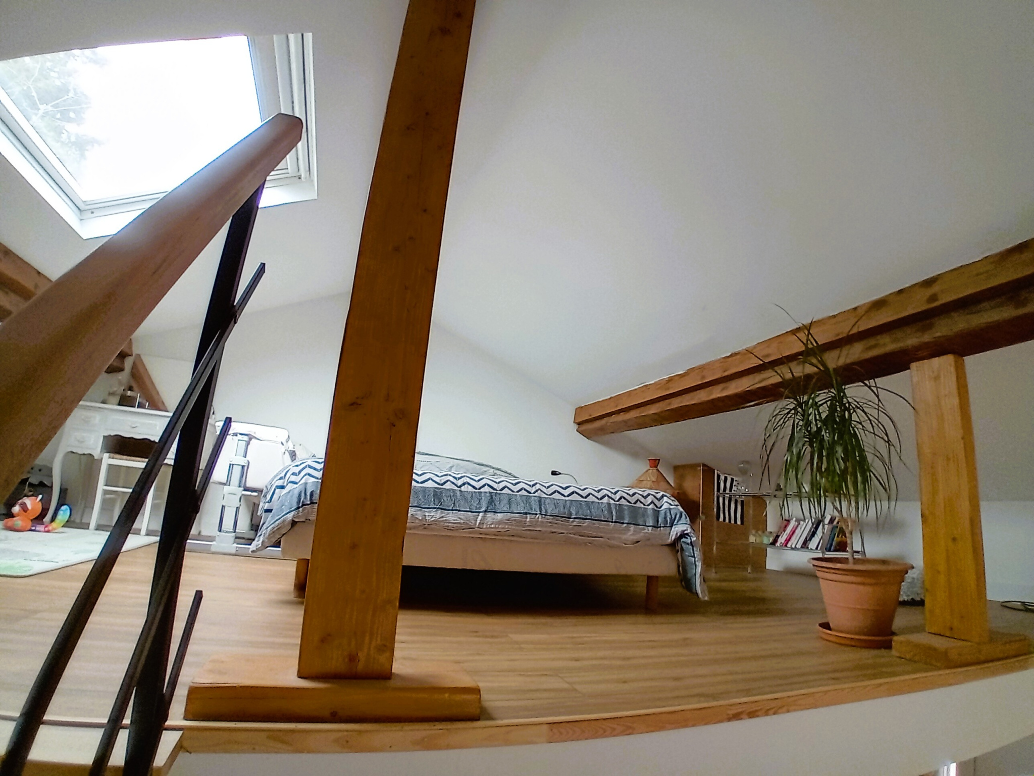 TOULON CLARET- Appartement en haut de villa avec beaucoiup de cachet, il se compose : d'un salon, une cuisine ouverte, une salle d'eau et wc séparé, un bureau, une chambre. A l'étage une mezzanine avec rangements d'une surface au sol de 27m2.