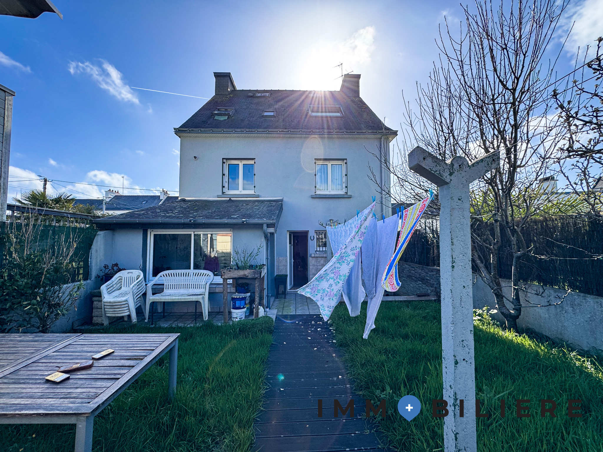 EXCLUSIVITÉ - Kerentrech, au calme entre le Scorff et l'école Paul Langevin, maison non mitoyenne en bon état comprenant une salle à manger avec cuisine ouverte donnant sur jardin, à l'étage une grande pièce de vie, une chambre et un bureau et au 2ème étage 3 chambres et une salle d'eau .