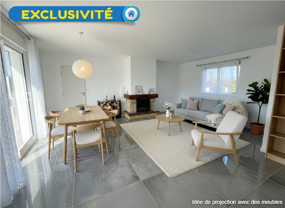 Exclusivité ! Charmante maison de plain-pied, entièrement rénovée, située dans un environnement paisible. Elle se compose d'une entrée, d'une cuisine aménagée, d'un séjour-salon avec cheminée insert, d'une salle d'eau, de WC séparés et de trois chambres.