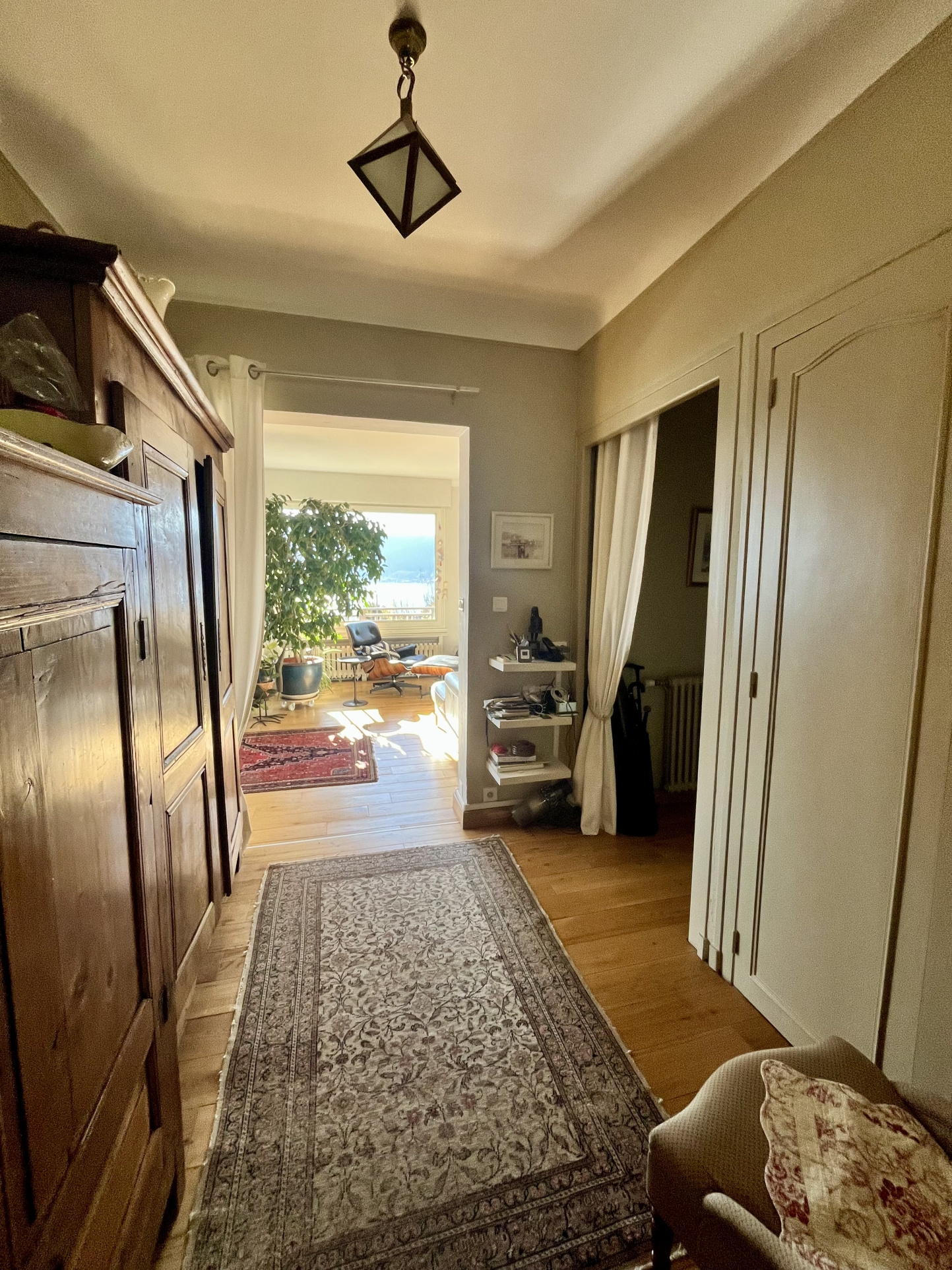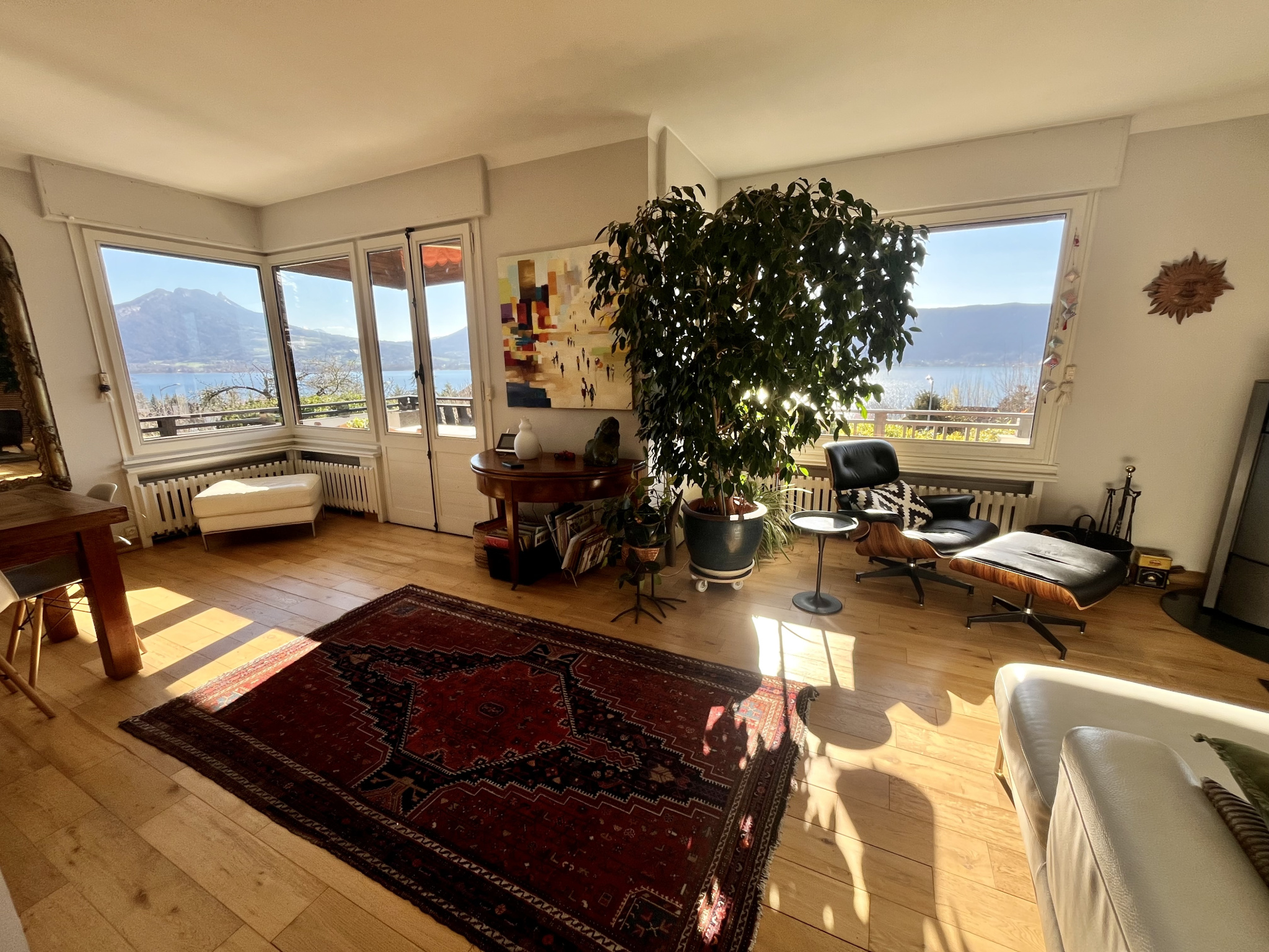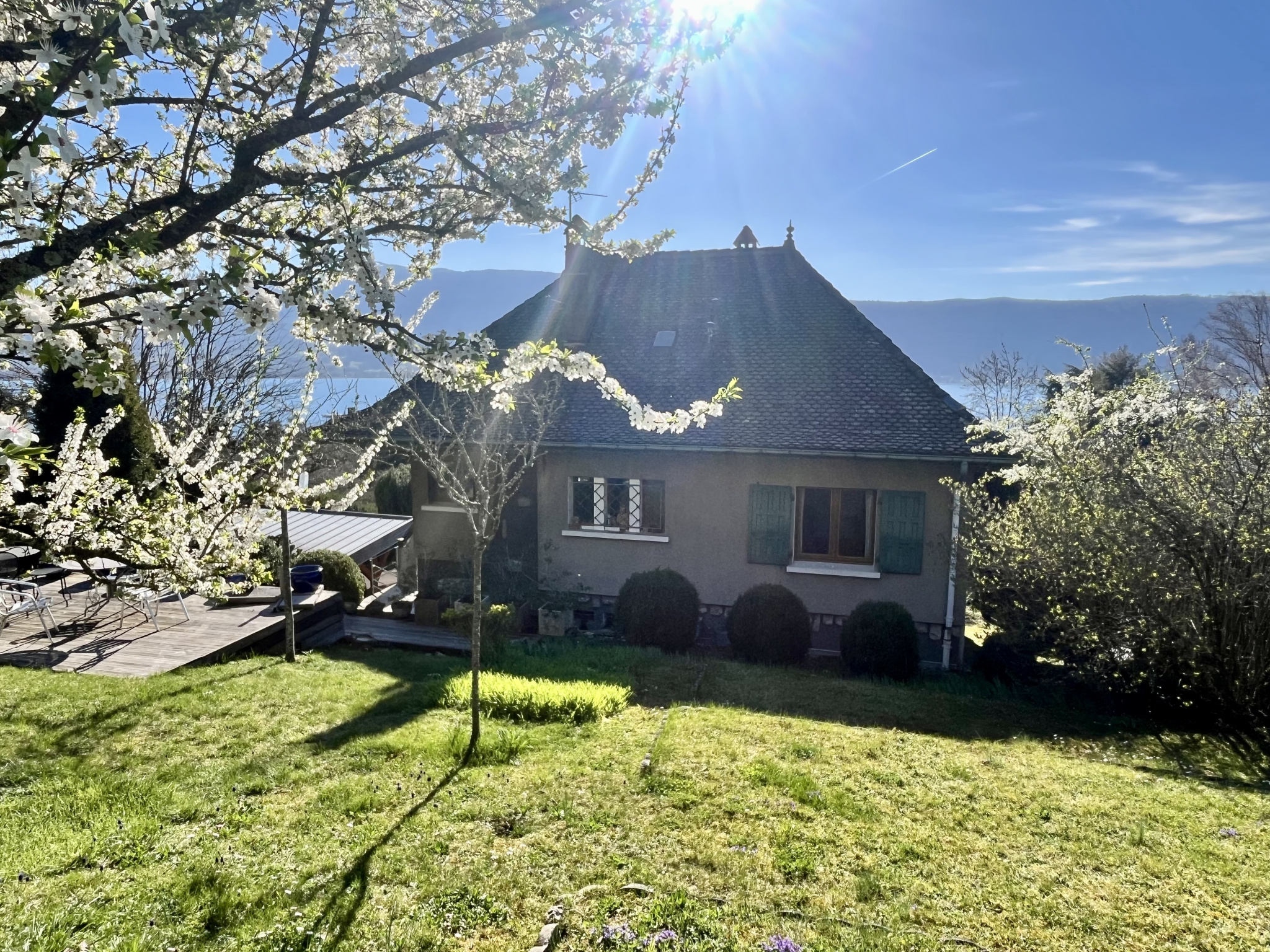VEYRIER-DU-LAC, Maison de caractère des années 60 offrant une magnifique VUE SUR LE LAC et les montagnes. Maison disposant d'une belle pièce à vivre de 50m2 baignée de lumière ouvrant sur un balcon terrasse avec la vue, chambre et salle de bains de plain pied. En rez de chaussée, elle dispose de 2 grandes chambres, une salle de douche, buanderie, cave et grand garage. Potentiel important avec combles entièrement aménageables sur dalle à l'étage. Maison desservie par une belle allée aménagée et implantée sur un beau terrain clos et paysagé de 1439m2. Abri voitures.