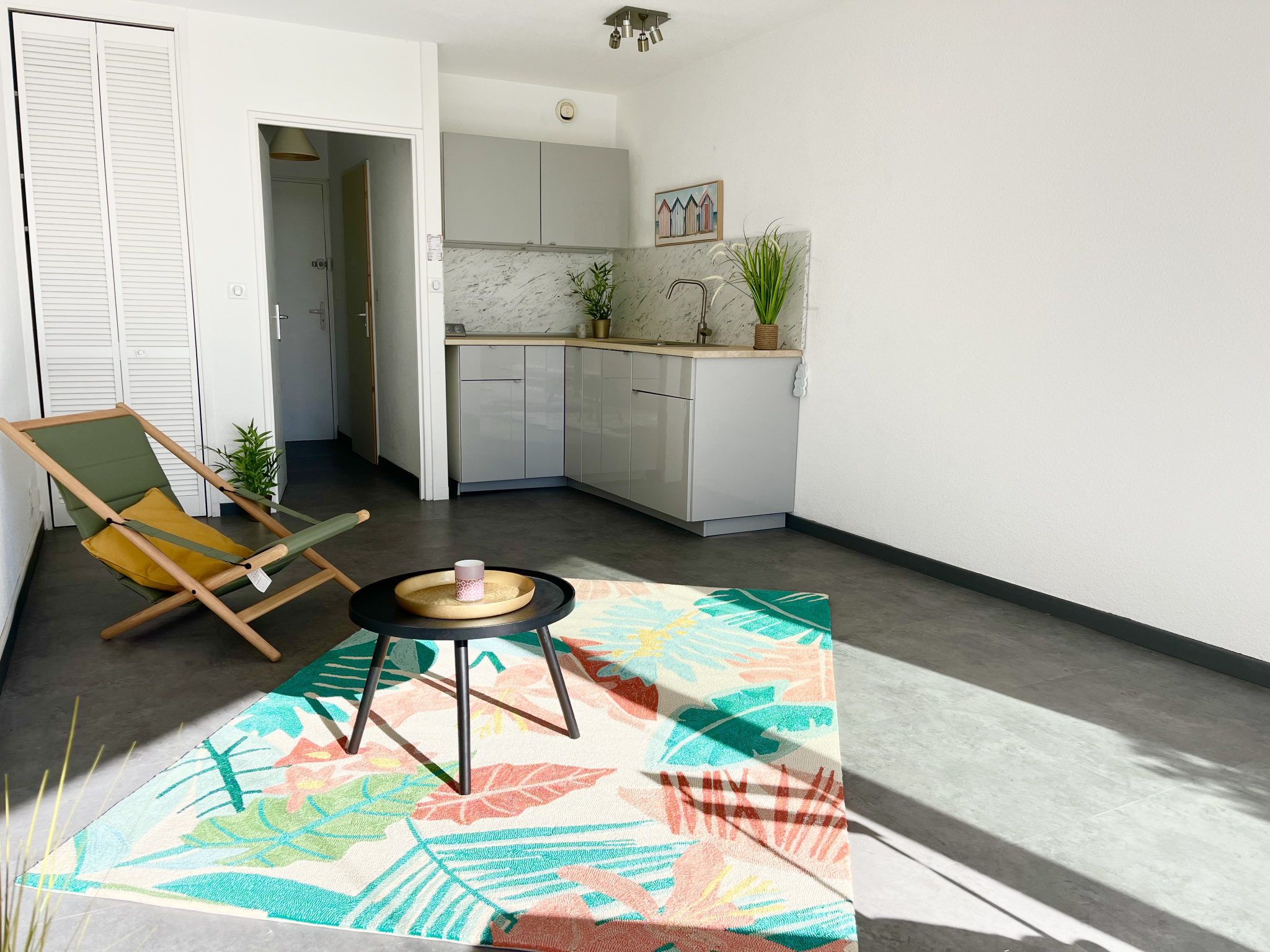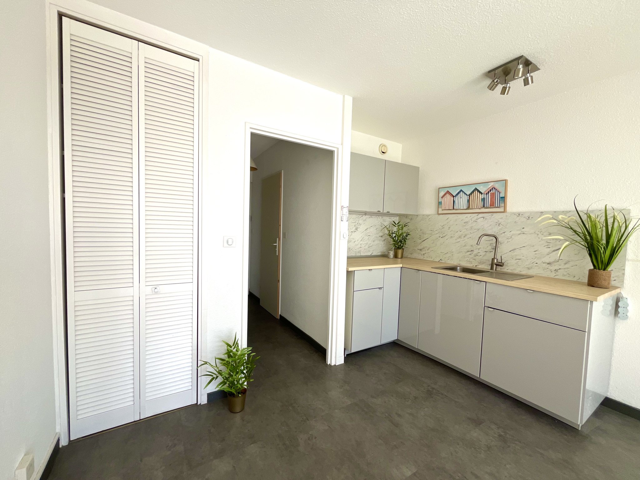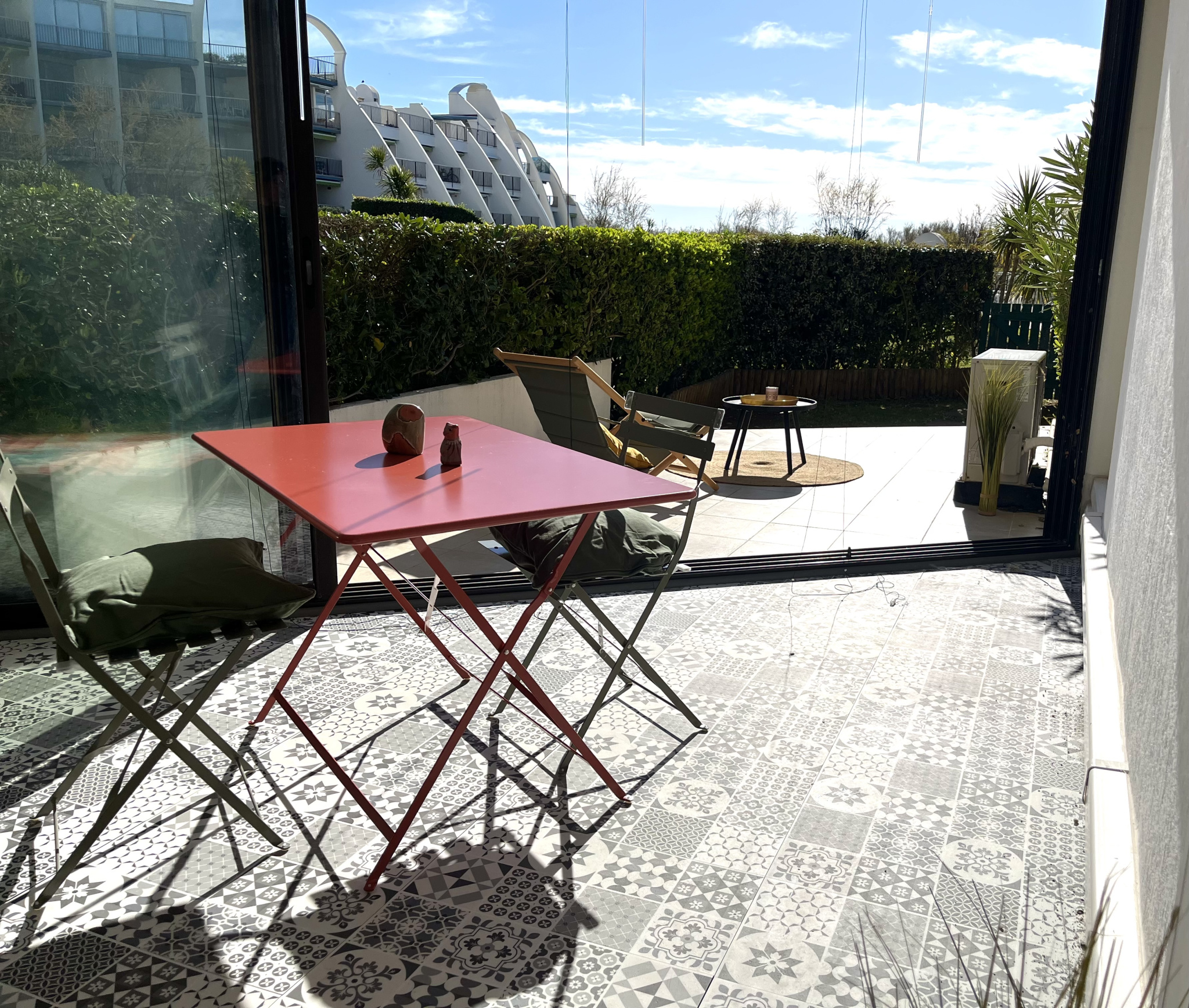A La Grande Motte, très beau studio cabine de 34m2 avec sa loggia fermée incluse, en rez de jardin - Vous pourrez apprécier la petite vue mer depuis la terrasse et les magnifiques espaces verts de la copropriété - Appartement composé d'une entrée avec coin cabine, une salle d'eau avec toilettes, une pièce principale exposée Sud-Est, un coin cuisine ouvert sur la pièce de vie et une loggia iintégrée de 9m2 - En extérieur, une grande terrasse et un petit coin jardin - Place de parking privative - Résidence sécurisée avec piscine et gardien - Accès direct à la plage et à 5 minutes à pied des commerces - Idéal investissement locatif ou résidence secondaire.