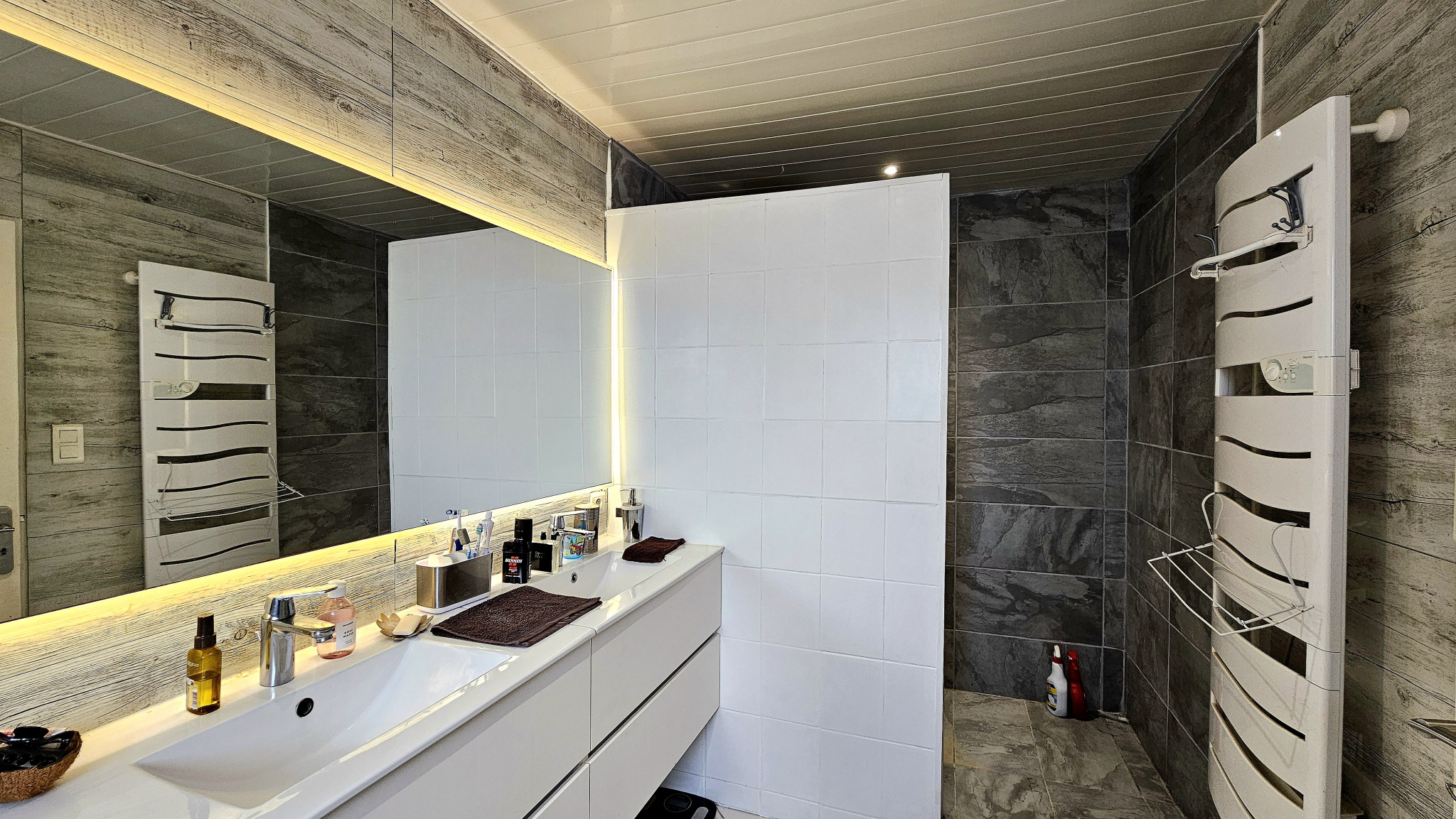 La maison dispose de 3 chambres confortables, pouvant accueillir famille, invités. La salle de bain est très appréciable avec sa baignoire et sa douche, offrant un confort au quotidien.