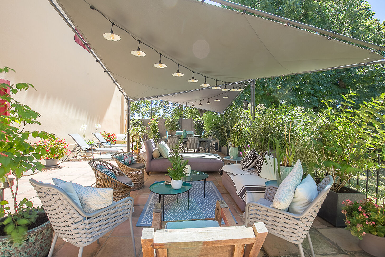 Dès l'entrée, la noblesse du bâti et la hauteur sous plafond confèrent aux lieux une atmosphère généreuse, où volume et lumière s'accordent harmonieusement. La pièce de vie, à la fois chic et chaleureuse, sublimée par sa cheminée, intègre une cuisine ouverte et un espace salon reposant. Elle s'ouvre sur une terrasse aménagée de plus de 100m², véritable prolongement du séjour, où il fait bon se détendre et profiter de la douceur provençale.