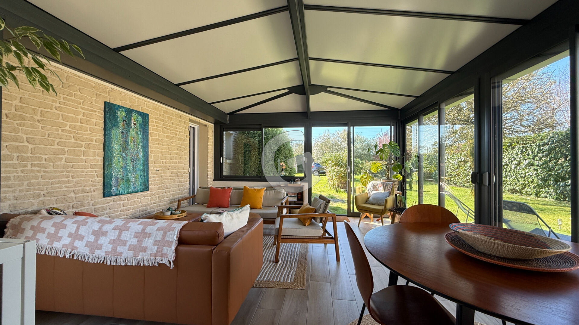 *Le coeur de la maison s'organise autour d'une pièce de vie conviviale avec cuisine ouverte, prolongée par une superbe véranda de 24 m² exposée sud-ouest. Véritable signature du bien, cet espace baigné de lumière offre un lieu de vie supplémentaire, confortable en toute saison.