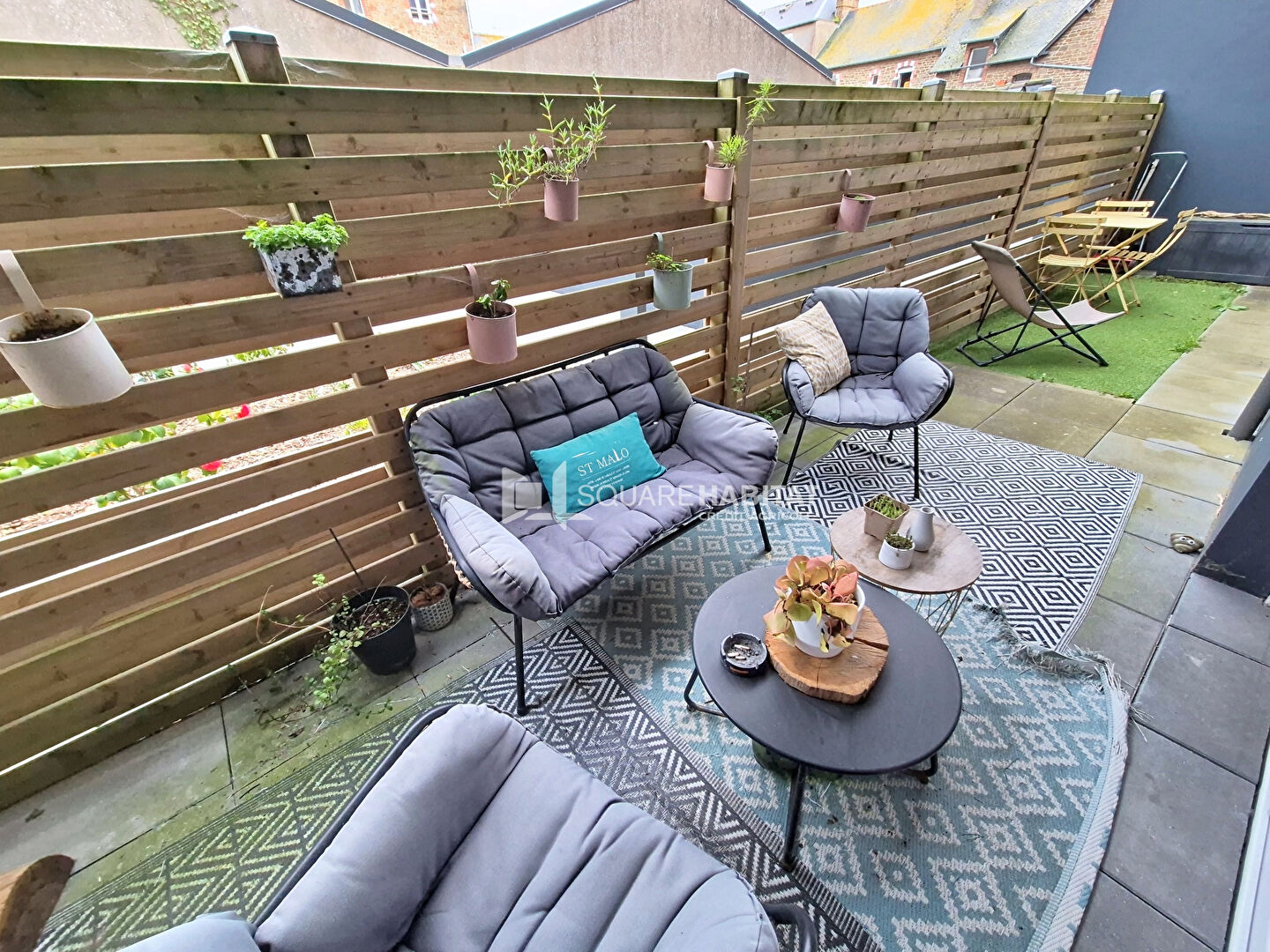 Il comprend une entrée, une pièce de vie de plus de 20m² avec une cuisine aménagée et équipée donnant accès à la terrasse, une chambre, une salle d'eau avec wc.