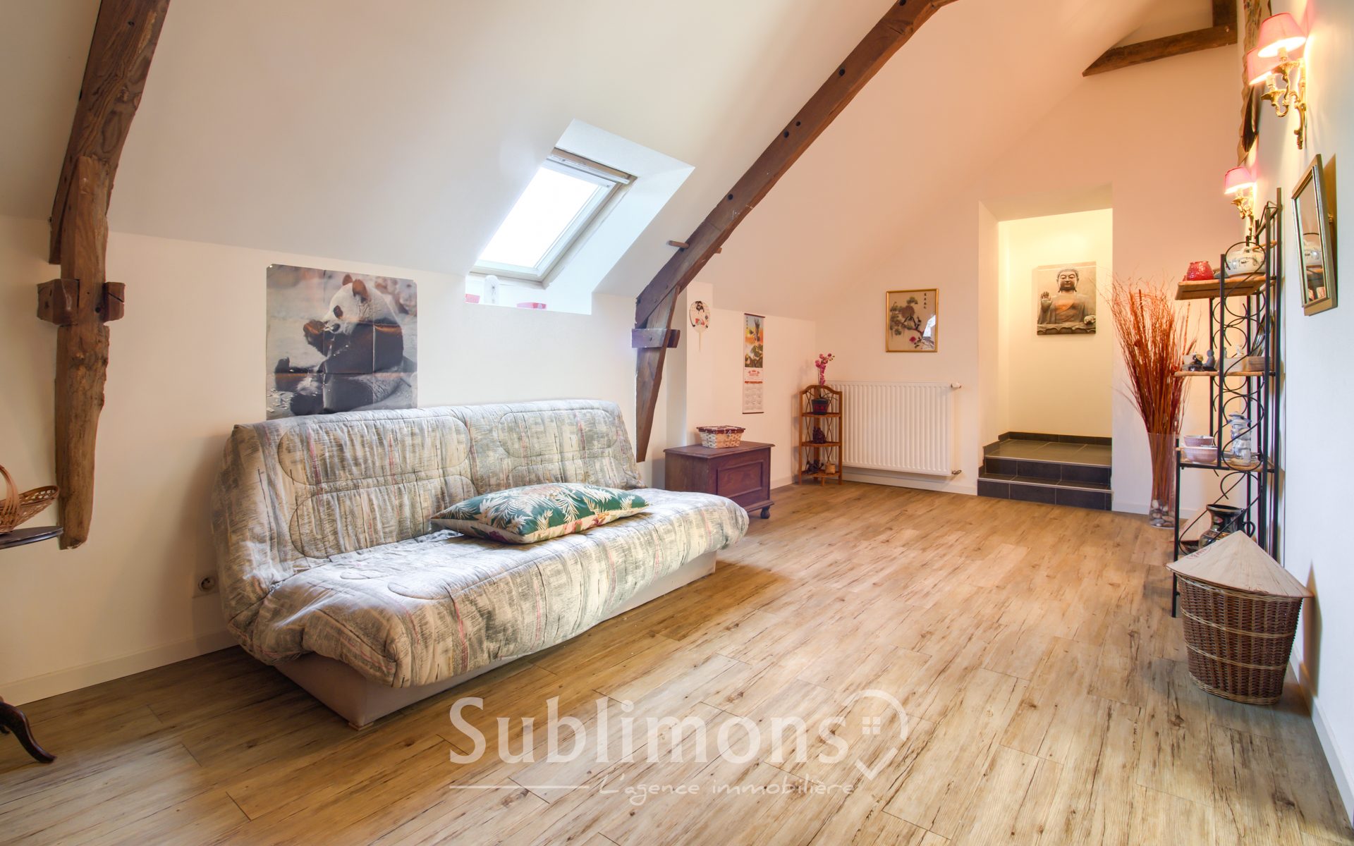 À l'étage, l'espace s'organise autour de deux mezzanines, dont l'une aménagée en bureau, offrant une belle luminosité et une sensation d'ouverture. Vous y trouverez également trois chambres supplémentaires, une salle d'eau équipée à la fois d'une baignoire et d'une douche, un WC ainsi qu'un espace de rangement.