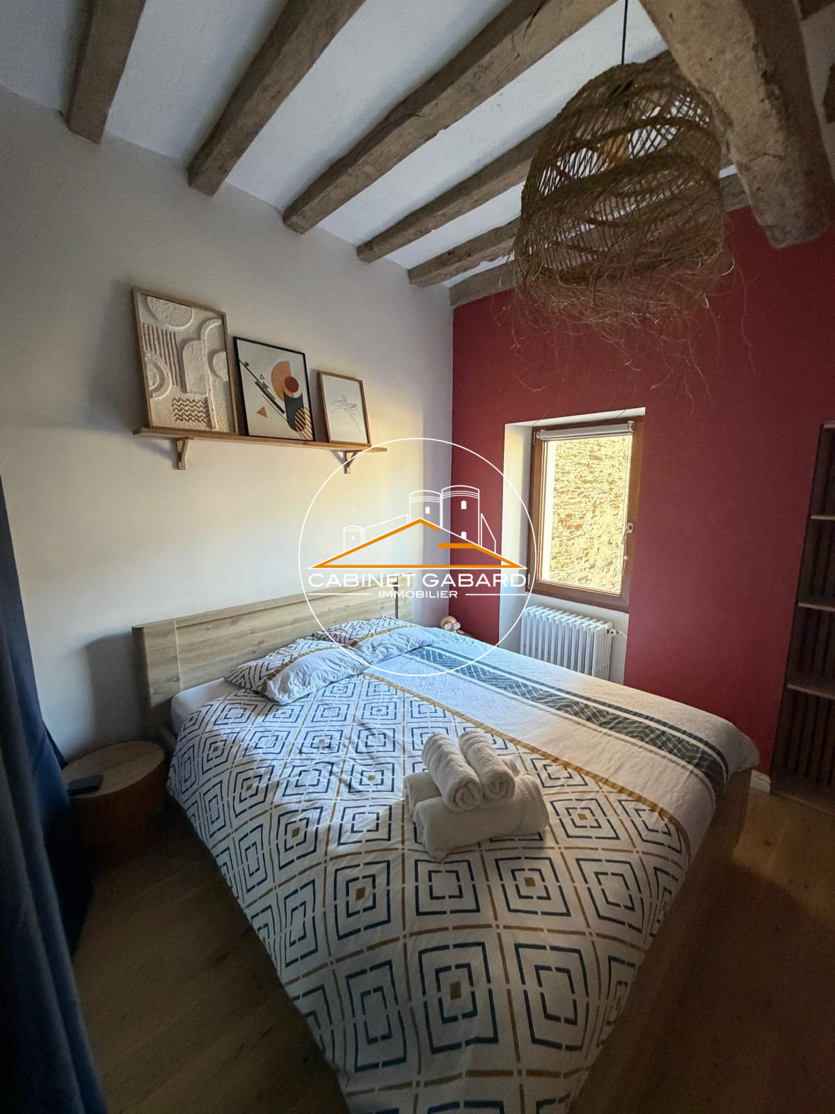 Cet appartement de charme est composé d'une belle pièce de vie avec sa cuisine aménagée et équipée, mur en pierres apparentes et cheminée, une chambre avec placard, une salle d'eau avec Wc.