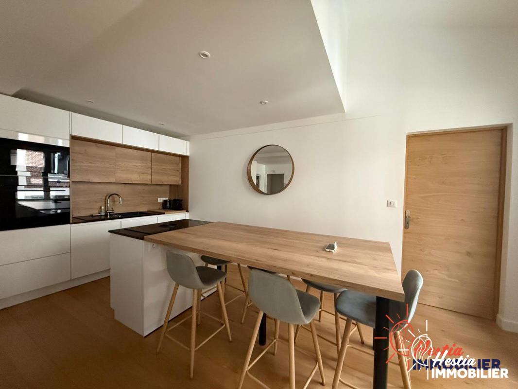 Idéalement situé au coeur du centre historique de Reims, à seulement 100 mètres de la Cathédrale et à 10 minutes à pied de la gare TGV Reims Centre, découvrez ce superbe appartement indépendant, alliant le charme de l'ancien et le confort moderne, au sein d'une résidence sécurisée de standing, au calme absolu. L'appartement développe une surface de 99 m2 au sol et 82 m2 loi Carrez. Entièrement climatisé, il séduit par ses volumes, sa luminosité et la qualité de ses prestations. Il se compose d'une entrée, un beau salon : salle à manger avec cuisine ouverte équipée, 3 chambres avec salle d'eau de WC séparés. Le bien se distingue par une qualité d'équipements soigneusement sélectionnés, pensés pour offrir un confort de vie optimal au quotidien. La climatisation réversible assure une température idéale en toute saison, tandis que les volets roulants et le double vitrage garantissent isolation, tranquillité et sérénité. L'installation d'un ballon thermodynamique vient compléter cet ensemble performant, alliant économies d'énergie et modernité. L'ensemble bénéficie de finitions soignées, traduisant un niveau de standing élevé et une attention particulière portée aux détails. Un garage privatif, équipé d'une borne de recharge pour véhicule électrique, complète ce bien -- un véritable avantage dans ce secteur recherché du centre-ville rémois. 7 lots pricipaux de copropriété. Prix : 367 500EURFAI (Honoraires à charge vendeur) Pour l organisation d'une visite : Maeva LUCE au 06.42.44.91.30 Dans une copropriété de 16 lots. Aucune procédure n'est en cours. Classe énergie D, Classe climat B Montant moyen estimé des dépenses annuelles d'énergie pour un usage standard, établi à partir des prix de l'énergie de l'année 2022 : entre 970.00 et 1370.00 EUR. Les informations sur les risques auxquels ce bien est exposé sont disponibles sur le site Géorisques : georisques.gouv.fr.