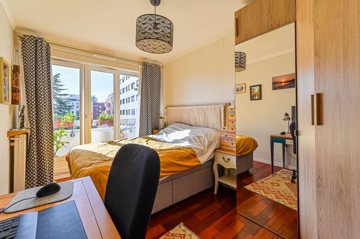 Appartement lumineux orienté sud-est, calme et très bien agencé avec un séjour de 28 m², cuisine ouverte et équipée, deux chambres, placards intégrés et prises Ethernet.