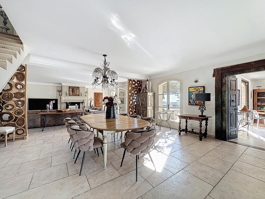 En position dominante à Fayence, dans un quartier résidentiel prisé, élégante propriété provençale de 380 m² habitables sur un terrain paysager avec vue panoramique. Elle se compose de 7 chambres en suite, d'un vaste séjour avec cheminée double foyer, d'une cuisine équipée, d'un spa intérieur, d'un salon privé, d'une cave à vin, ainsi que d'un studio indépendant et d'un garage fermé. À l'extérieur : jardin soigné, terrasses, piscine au sel chauffée. À 9 minutes à pied du village et 8 km du Golf de Terre Blanche.