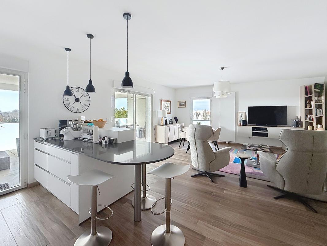 Canal de Rompsay, votre agence ORPI vous propose cet appartement exposé Sud de 83,40 m² avec une terrasse de 26 m² dans un immeuble de 2017 avec ascenseur et comprenant une entrée avec placard, un séjour avec cuisine équipée, un cellier, deux chambres et une salle d'eau.