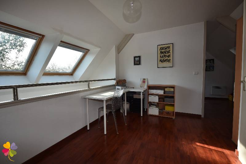 À l?étage, un palier distribue trois belles chambres, dont une avec dressing, ainsi qu?une salle de bains et des toilettes indépendantes et un espace bureau en mezzanine.