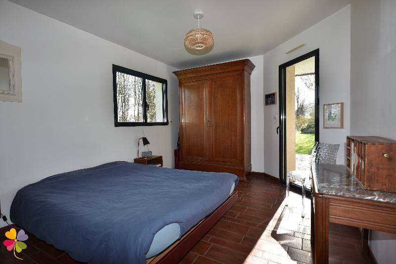 Un couloir dessert ensuite une suite parentale avec sa salle d?eau et ses toilettes privatifs, une arrière-cuisine buanderie ainsi que des toilettes avec lave-mains.