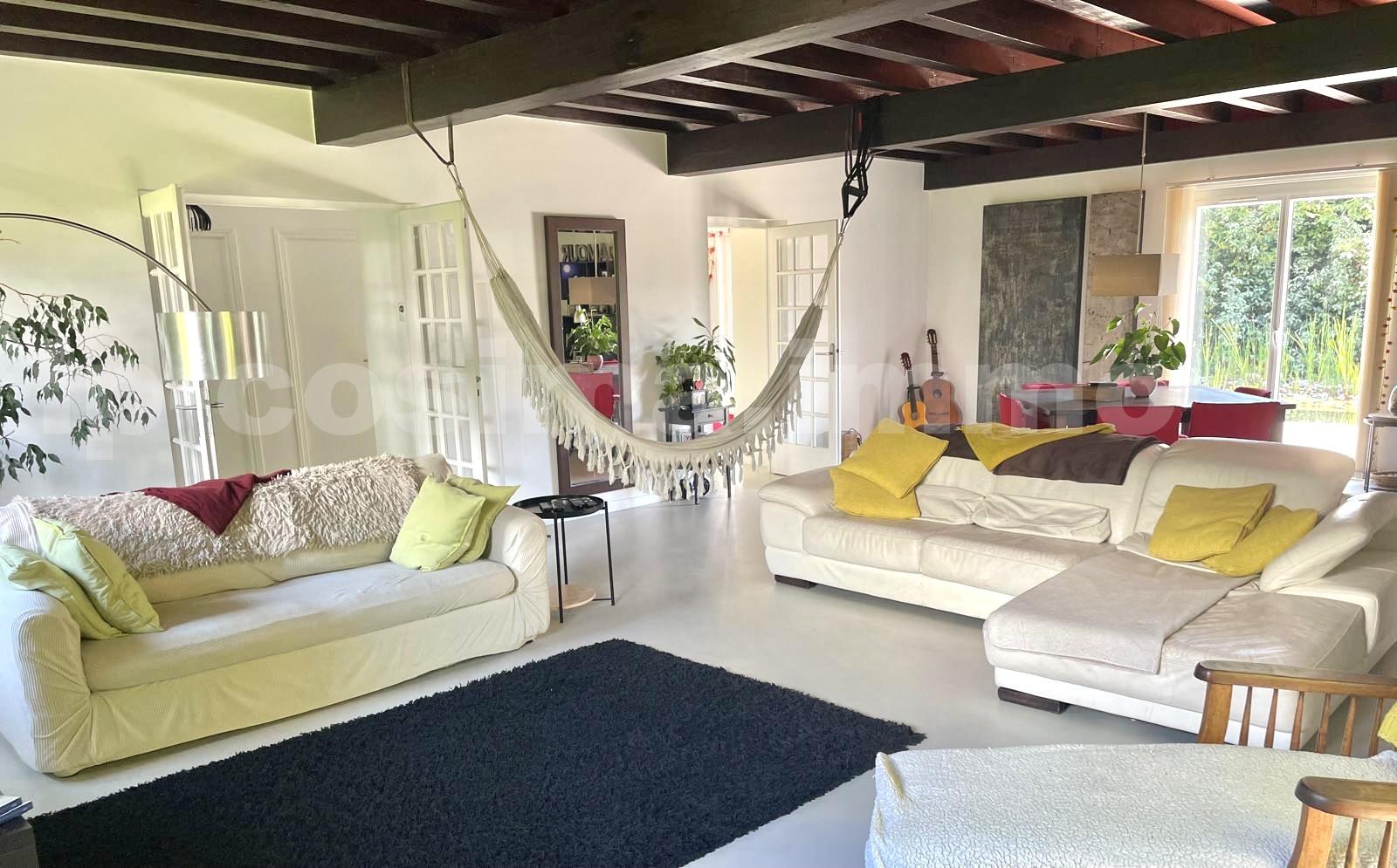 RARE A LA VENTE ! Devenez propriétaire d'une sublime villa familiale d'environ 250 m² nichée au c½ur d'un magnifique terrain arboré de 1'000 m² avec une piscine naturelle, offrant un cadre de vie paisible.