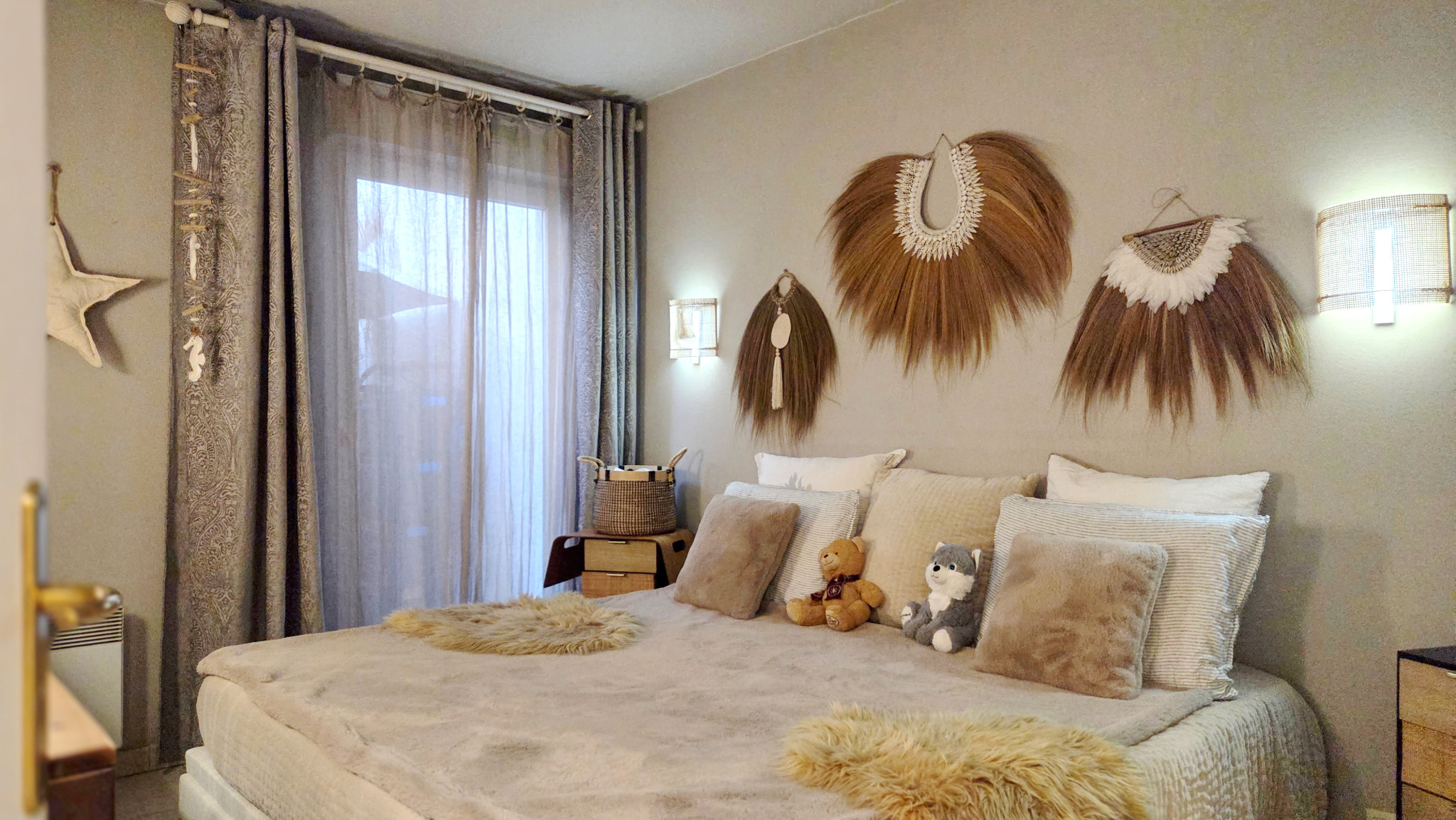 L'espace nuit se compose de deux chambres avec rangements et accès à une seconde terrasse de 23 m2, ainsi qu'une salle de bains.