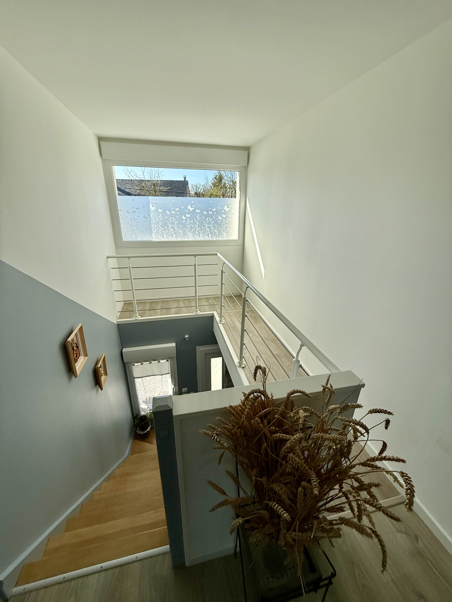 A l'étage, un grand palier trés lumineux desservant deux belles chambres et salle de bains avec baignoire et toilette.