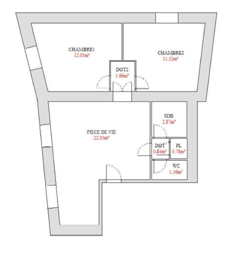 Il se compose d'une belle pièce de vie lumineuse et climatisée avec cuisine ouverte, aménagée et équipée, d'une salle de bains, d'un espace buanderie, ainsi que de WC séparés. Un dégagement dessert deux chambres avec possibilité placards intégrés.