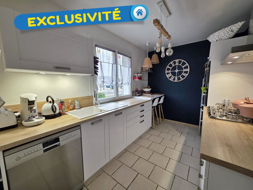Exclusivité ! Maison familiale comprenant au rez-de-chaussée : une entrée desservant un couloir, une cuisine aménagée et équipée, un séjour-salon avec cheminée à foyer ouvert, une chambre avec placard, une salle de bains ainsi que des WC indépendants.