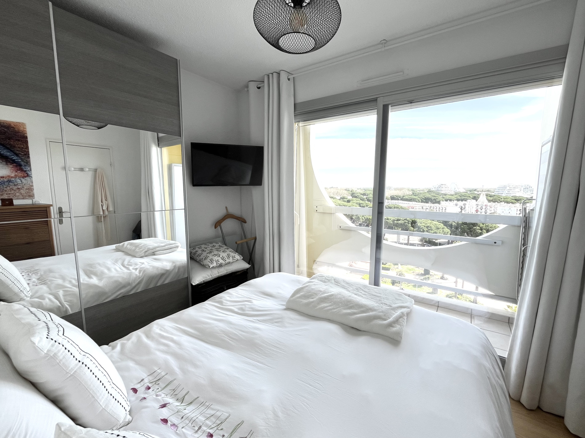 A La Grande Motte, dans la quartier port proche commerces, plages, marché... à vendre 2 PIECES PETILLANT ET COLORÉ de 42 m2 avec vue verdure très agréable - L'appartement a été INTÉGRALEMENT RÉNOVÉ avec soin et élégance, tout en conservant son côté fonctionnel - Une entrée accueillante vous invite à découvrir le charme de cet appartement équipé d'une climatisation réversible, de 2 loggias pour profiter de la vue depuis le 8ème étage, d'une belle chambre, d'un dégagement avec rangements et d'une salle d'eau avec toilettes - Tous les travaux de copropriété ont été réalisés : ravalement de façade, reve-êtement parking, parties communes - L'appartement est VENDU MEUBLÉ et avec une PLACE DE PARKING !