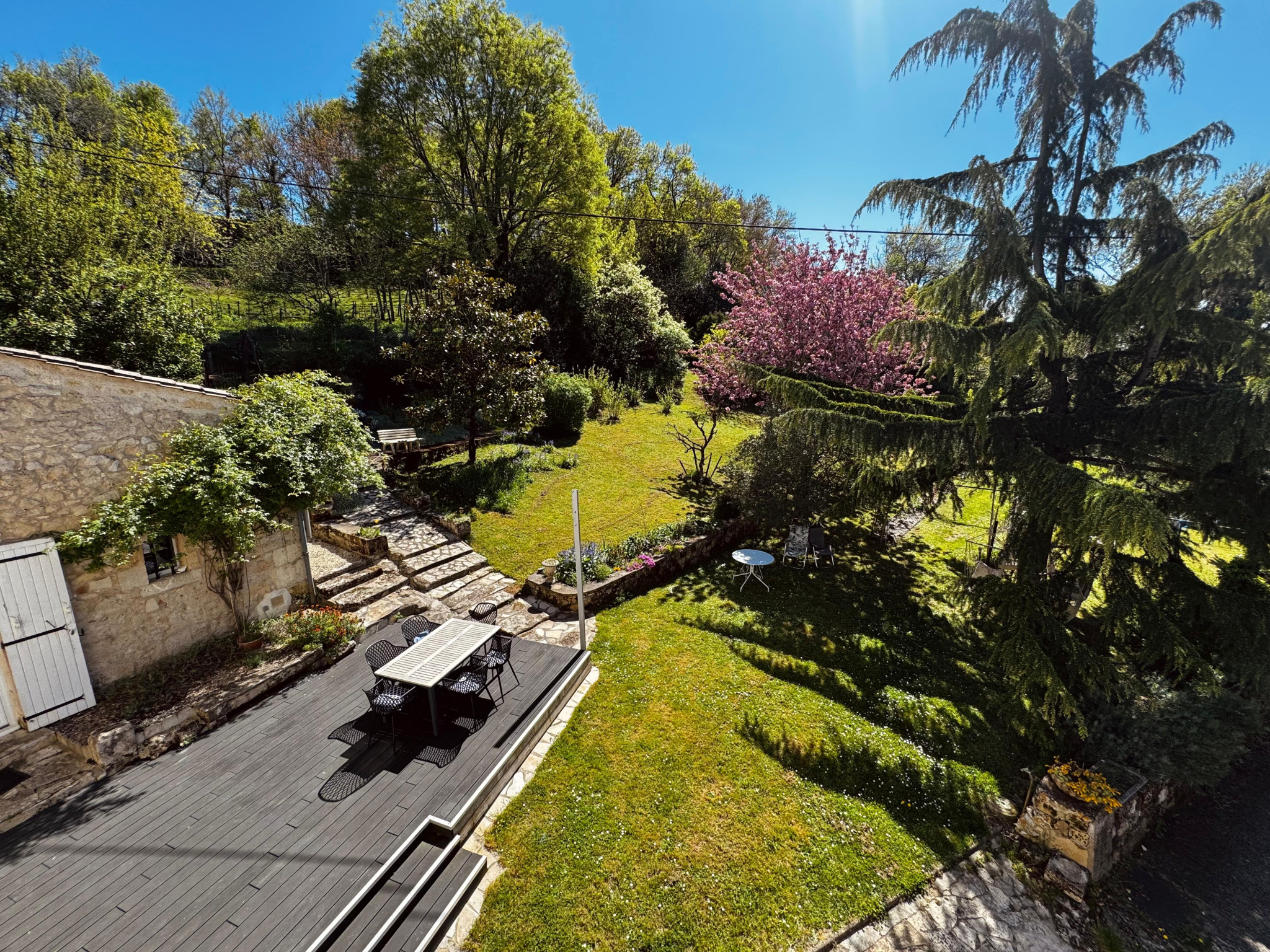Dès l'arrivée, le cadre séduit immédiatement avec son terrain vallonné d'environ 4000 m2, agrémenté de nombreuses essences d'arbres fruitiers, qui confèrent à l'ensemble un caractère bucolique rare, tout en garantissant un calme absolu sans vis-à-vis.