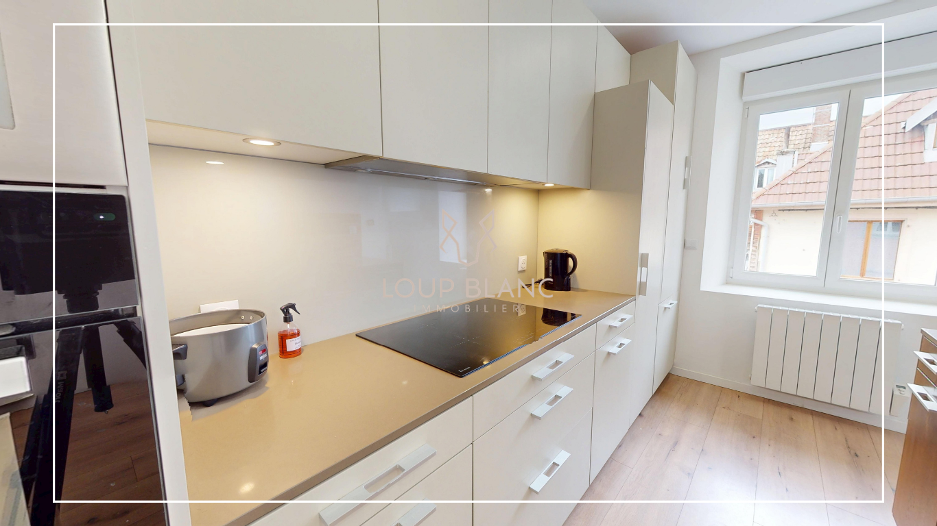 LOUP BLANC Immobilier Belfort vous présente à la vente ce bel appartement entièrement rénové de 98 m2, idéalement situé à Montbéliard.