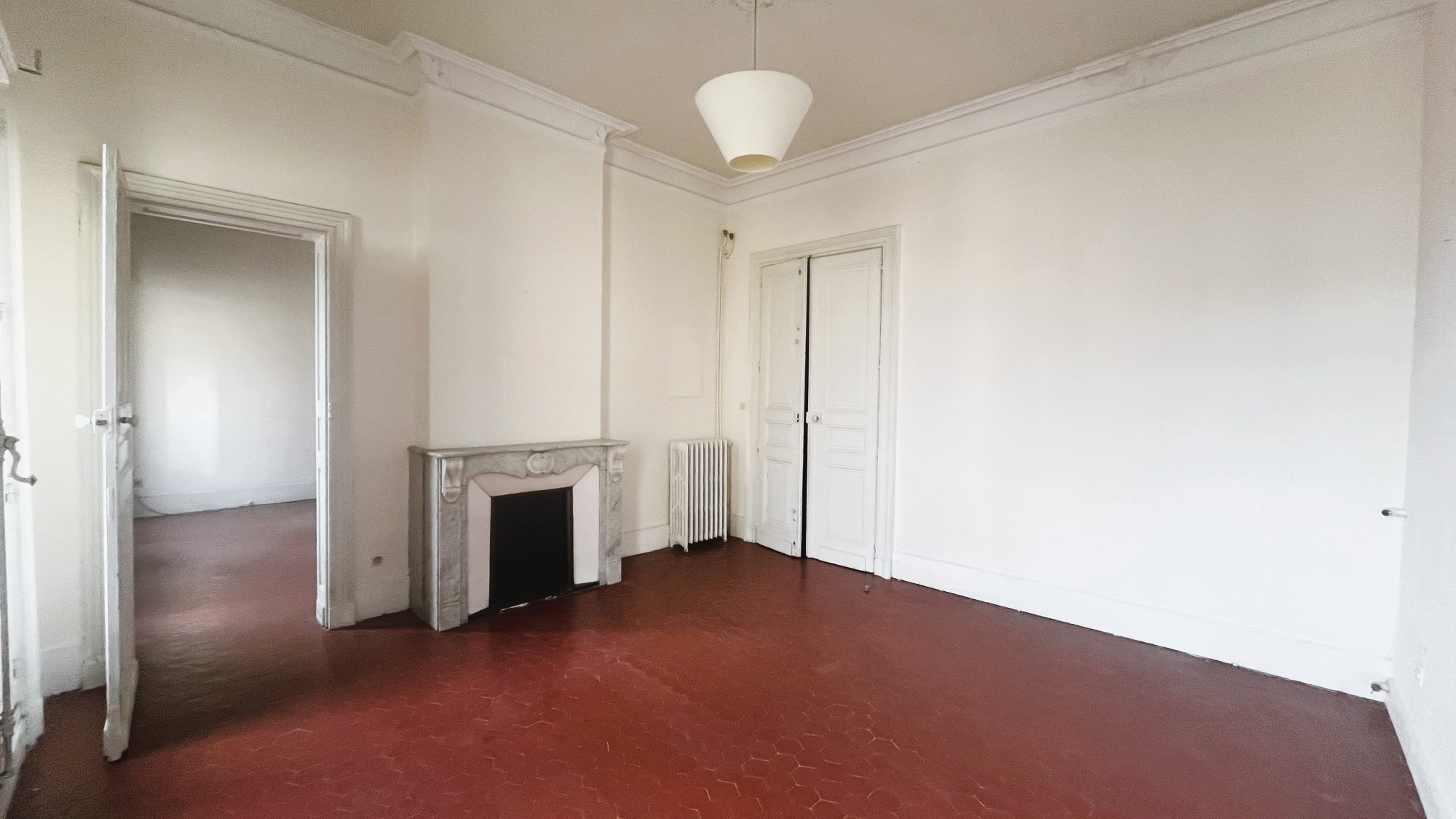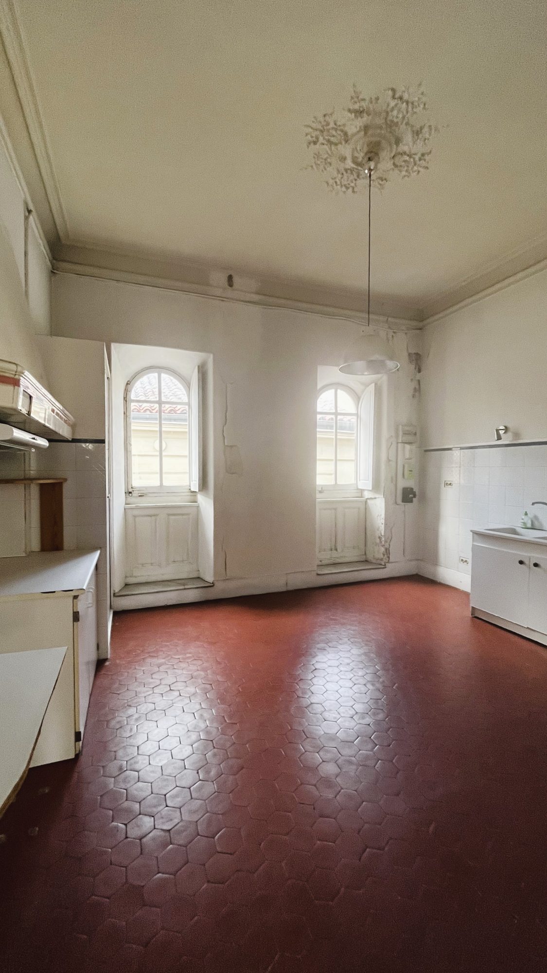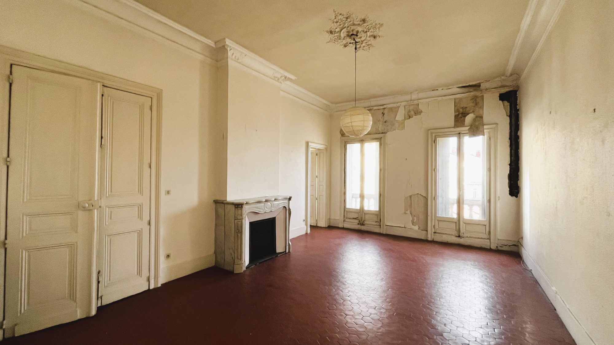 A VENDRE MONTPELLIER CENTRE - Exclusivité! 4 Rue Bruyas, spacieux appartement T3 (possibilité T4) de plus de 106m², à rénover, situé au 2ème et dernier étage d'un ancien hôtel particulier aux vitraux magnifiques. Cet appartement se compose d'une sublime entrée, d'un beau séjour lumineux , d'une cuisine séparée, de deux chambres très ajourée, d'une salle de bain avec toilettes. Plafonds hauts, moulures, cheminées, tomettes, carreaux de ciment, balcons de ville...et une vue imprenable sur les toits de Montpellier. Proximité Comédie, Gare, tram, commerces, écoles. Petite copropriété bien entretenue (Etanchéité toiture et cheneaux refaits en 2023, rénovation colonnes eau/raccordement appartements en 2025, rénovation électricité avec raccordement à la terre de l'immeuble en 2025, restauration porte d'entrée de l'immeuble en 2023). Bien rare...à visiter sans tarder!!! Prix : 374 900 FAI (honoraires d'agence charge vendeur déjà inclus dans le prix)