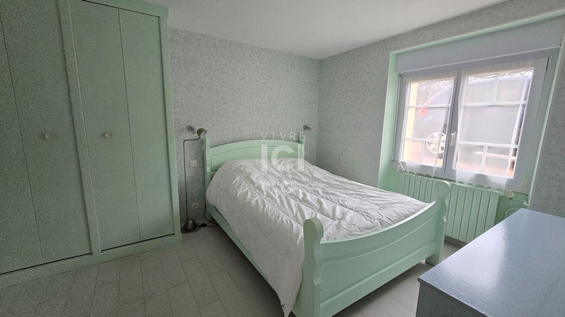 En rez de jardin : deux chambres (placards), salle de bains avec wc, buanderie.