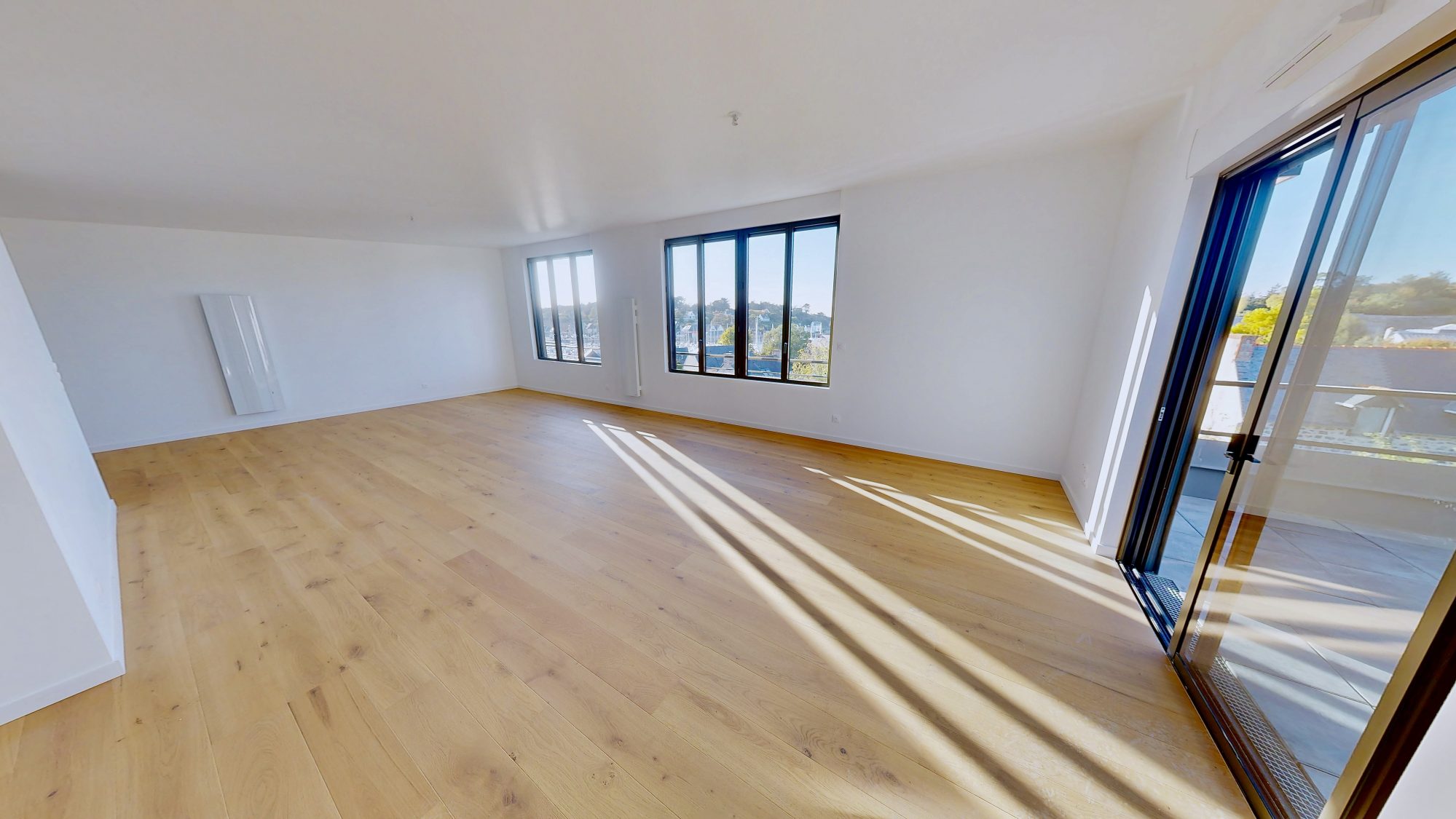Parquet contrecollé, carrelage/faïence standing, wc suspendus, menuiseries alu/volets roulants électriques.