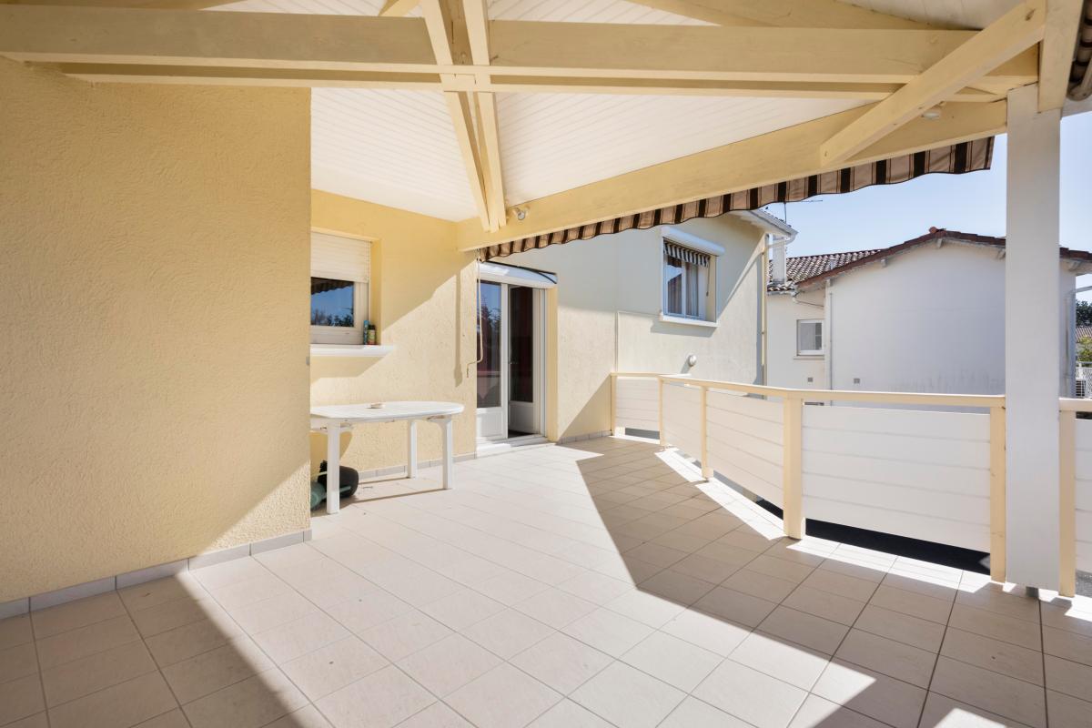 Le rez-de-chaussée se compose d'une entrée, d'une cuisine ouverte sur une salle à manger conviviale, d'un salon lumineux donnant sur une terrasse couverte, de deux chambres dont une avec petit balcon, d'une salle de bains et d'un WC.