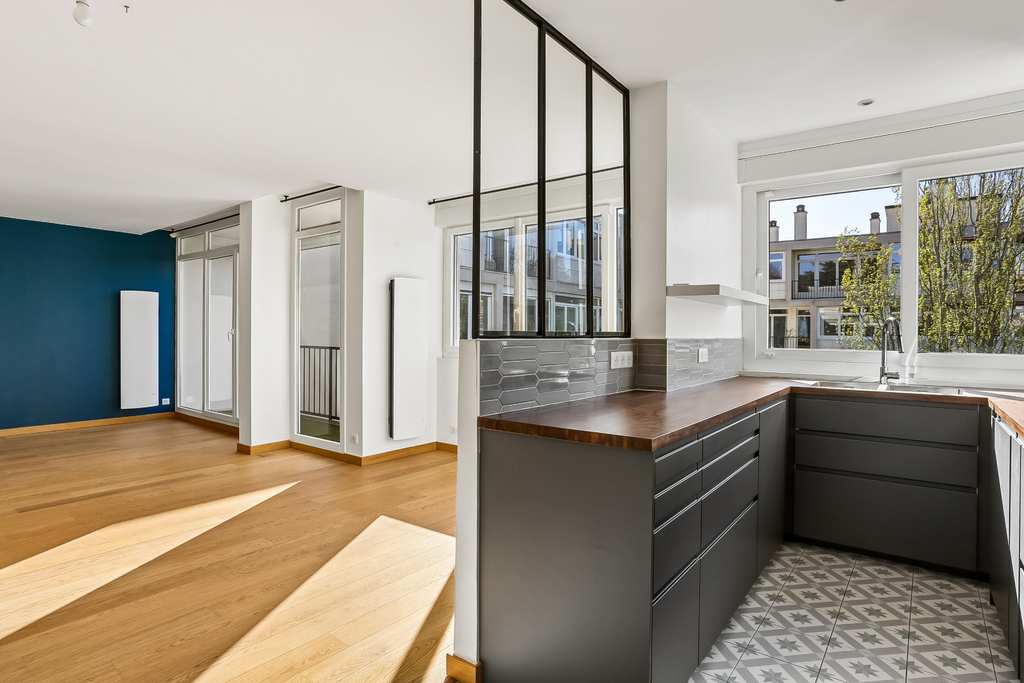 Rénové avec des matériaux de qualité, cet appartement vous séduira par son agencement optimisé et sa luminosité naturelle. Il se compose d'une entrée avec rangements, d'un grand double séjour prolongé d'un balcon et d'une cuisine ouverte entièrement équipée et meublée.