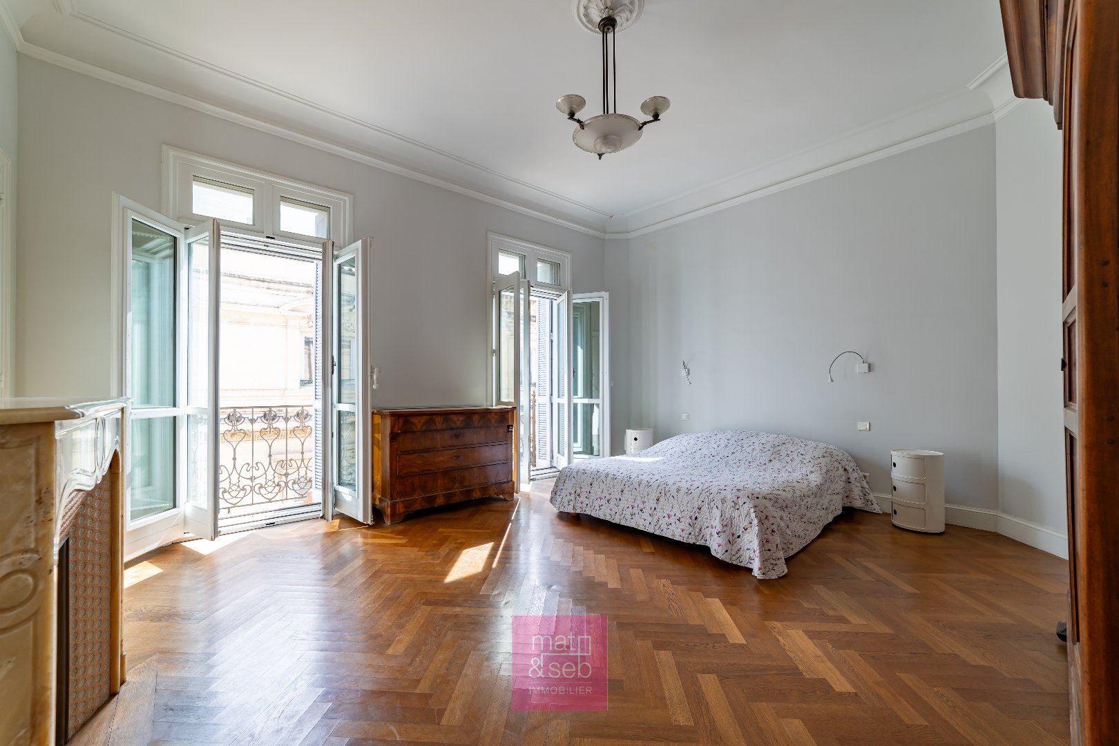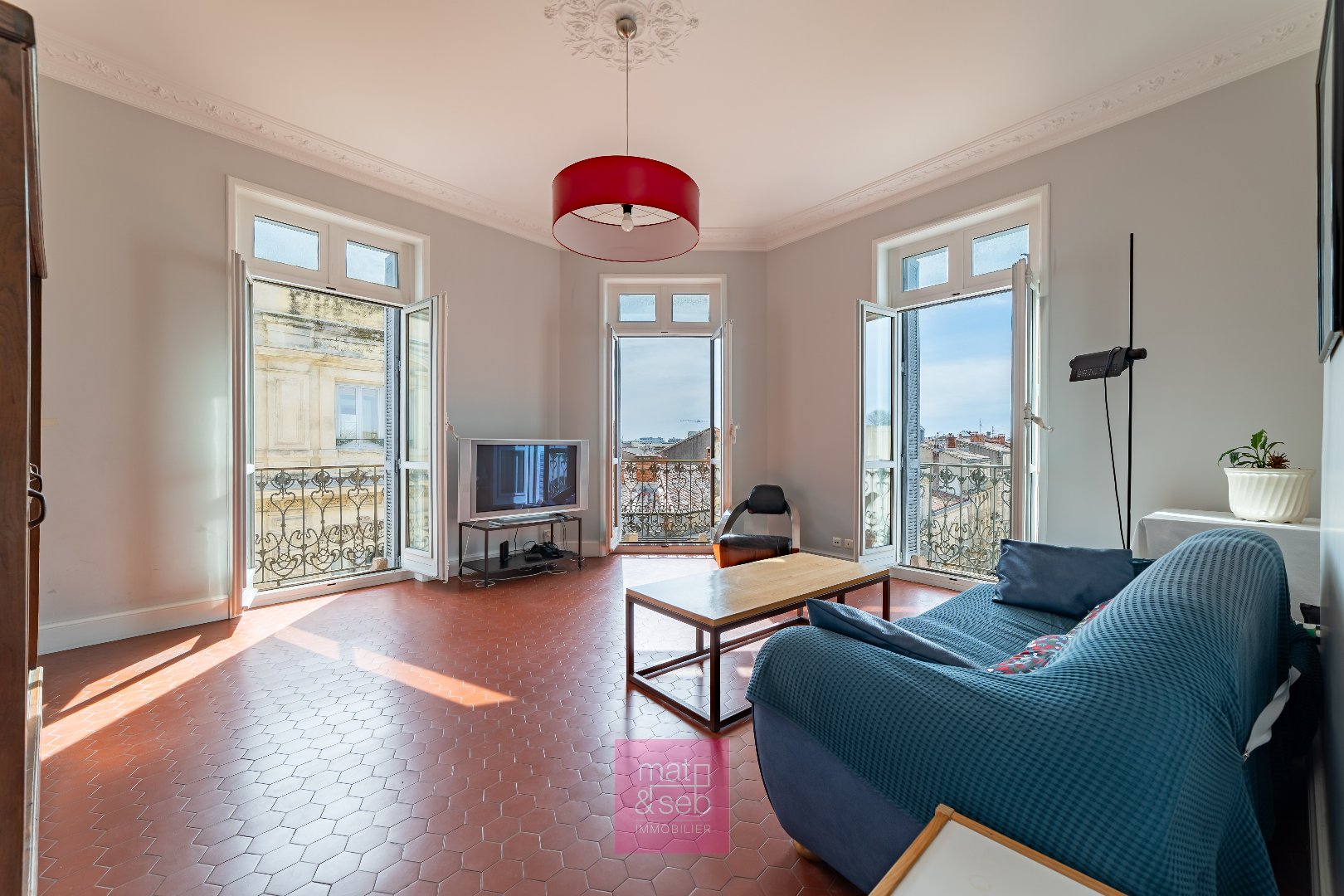 Dans un bel immeuble haussmannien, cet appartement occupe un étage entier, comme un monde à part suspendu au-dessus de la ville. Une belle lumière révèle les moulures et cheminées en marbre, le parquet en pointe de Hongrie et les tommettes. Les balcons filants accompagnent chaque perspective et ouvrent des vues remarquables, de Sainte-Anne au Peyrou. Trois entrées, deux cuisines, chauffage au sol... tout ici raconte un art de vivre rare, sans limite. Deux caves, double garage en option.