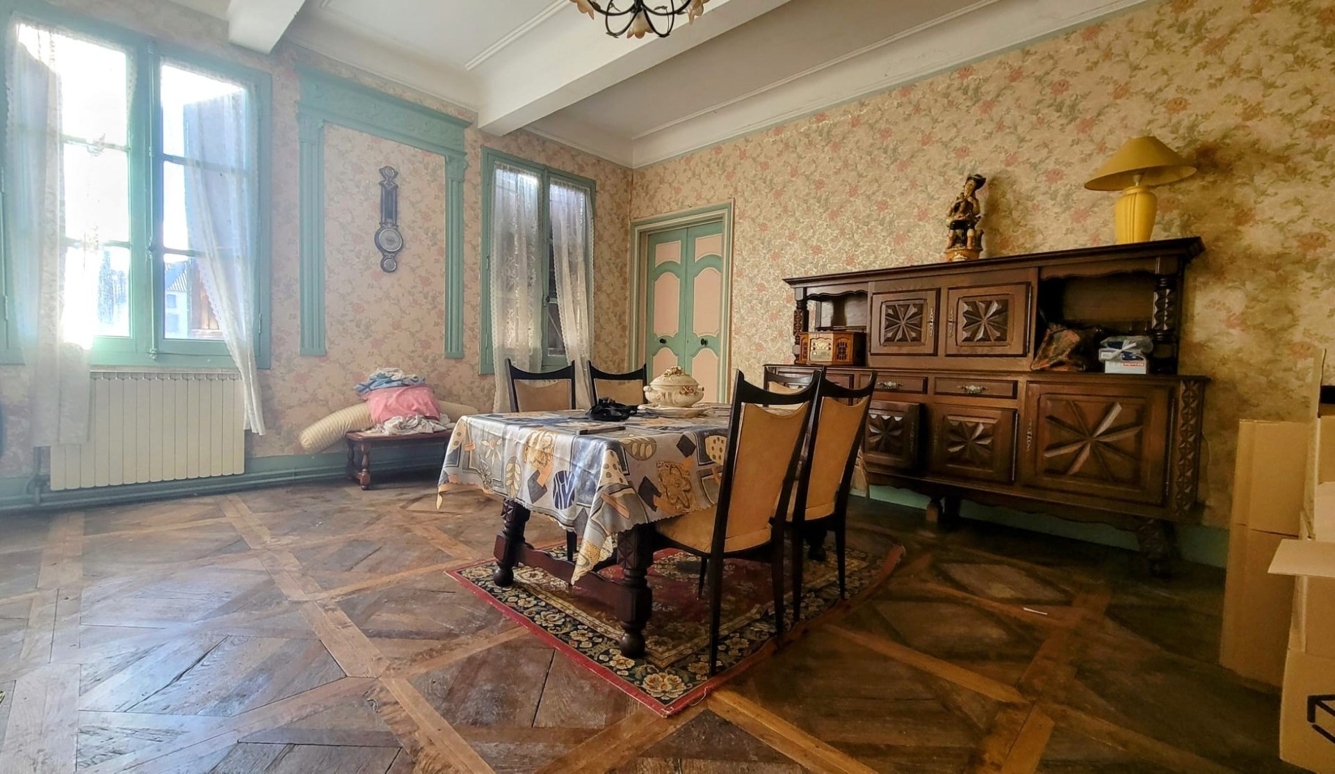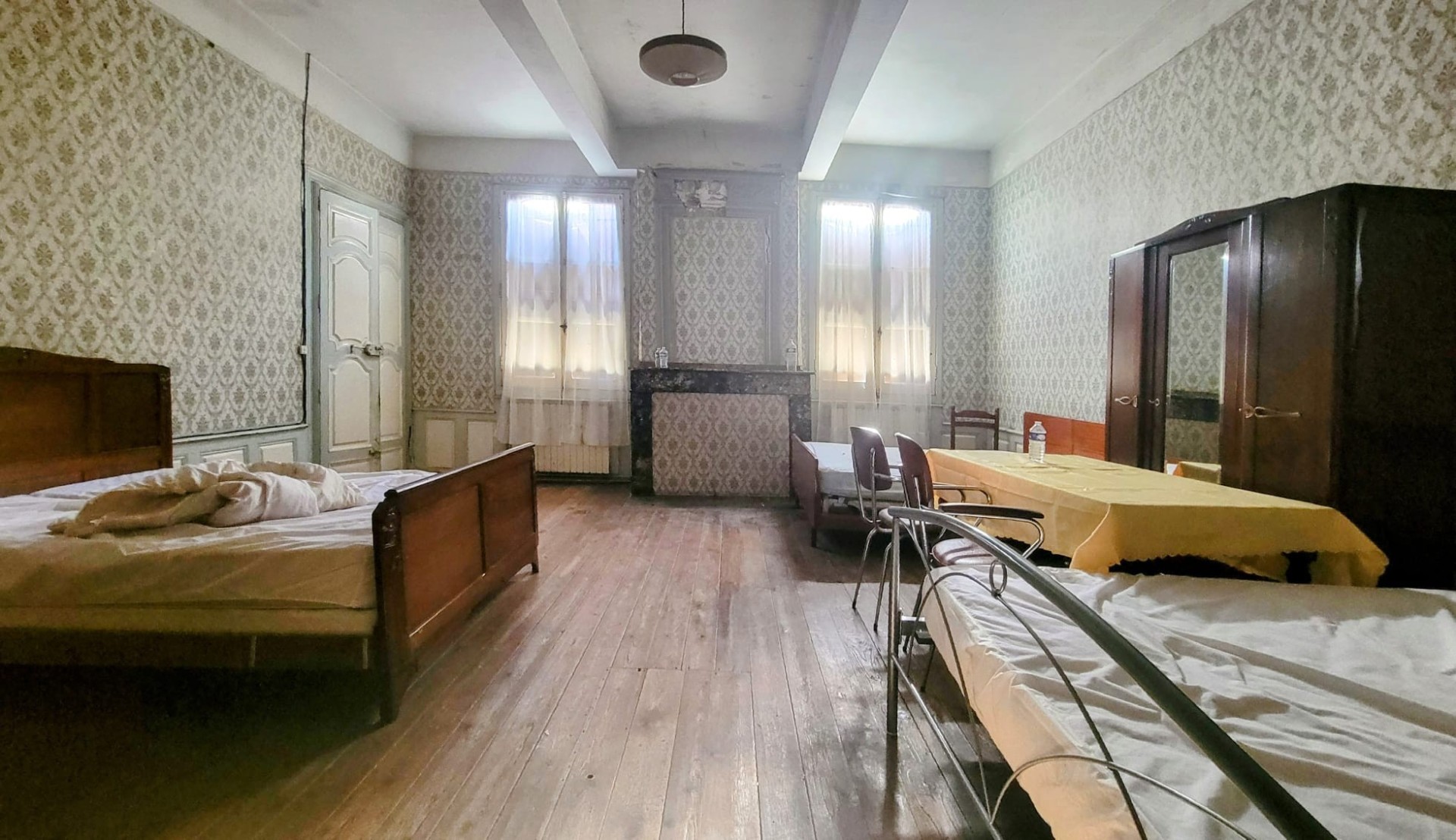 Trois niveaux au total (combles en partie aménageables), bel appartement au 1er étage d?environ 130 m². Travaux de rénovation à prévoir sur l?ensemble du bâtiment (toiture en partie, isolation, électricité?).