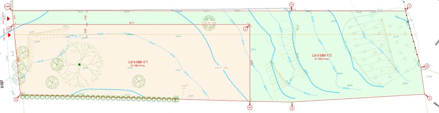 Parcelle pour un projet de maison individuelle avec jardin. Environnement naturel avec arbres existants dans un cadre calme et peu dense .