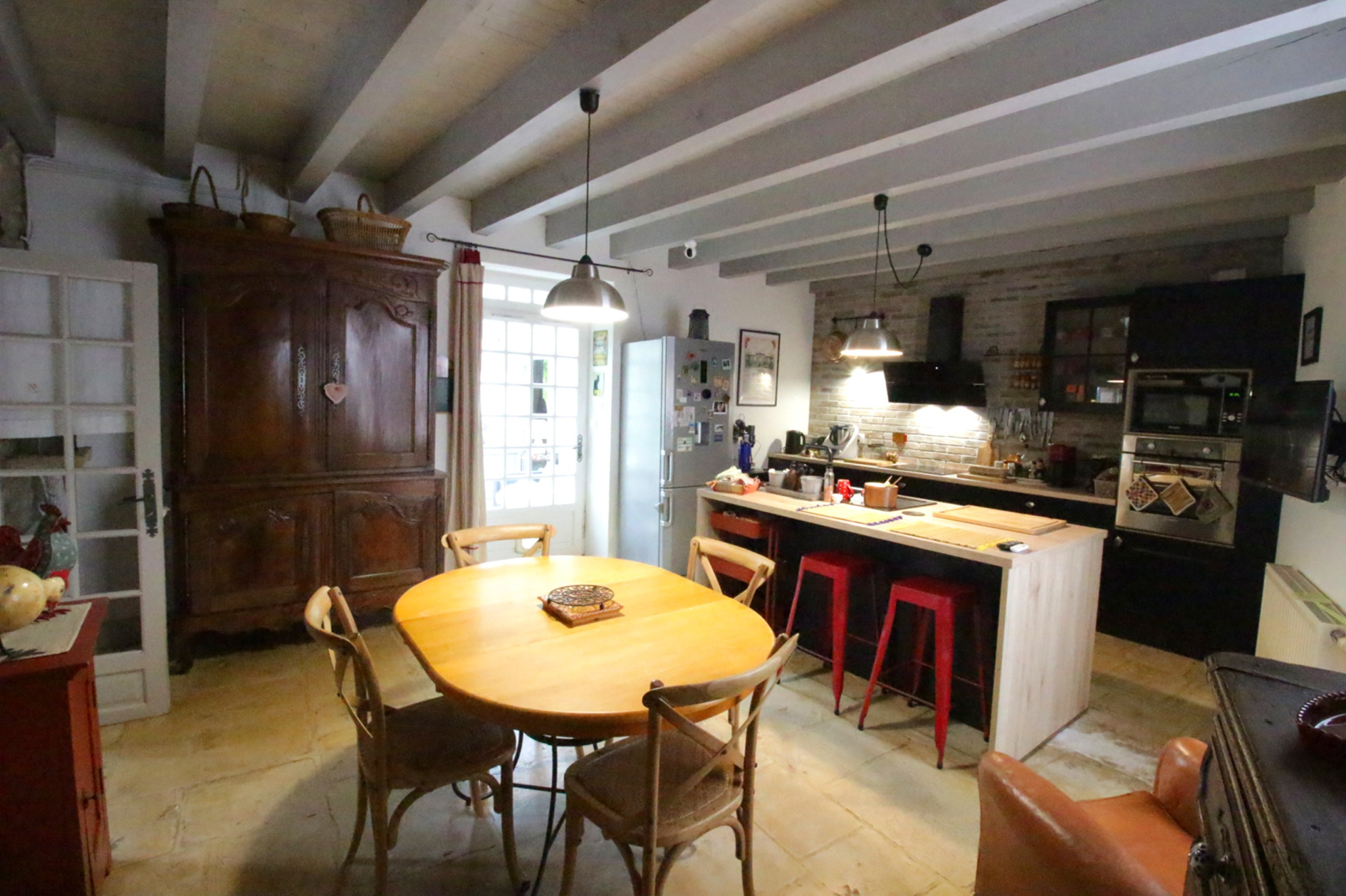 A moins de 15 minutes au nord de Neuville, venez découvrir cette belle longère rénovée de près de 200m2 habitables située dans un cadre bucolique. Si vous aimez la pierre et les belles rénovations, tout en cherchant calme et tranquillité, cette maison est faîte pour vous ! L'espace de vie spacieux entrée/bureau et salon/séjour avec son poêle à bois fait près de 70m2. Il est orienté plein ouest sur la jardin arboré et la terrasse. Que dire de la cuisine ! Très généreuse également, refaite il y a 2 ans, avec sa belle cheminée d'époque et son sol en pierre de taille, on s'y croirait ! La véranda apporte lumière et confort, elle se marie parfaitement avec l'harmonie des lieux. A l'étage, l'espace nuit est composée de 4 chambres (entre 9 et 25m2), il y en a pour tous les goûts. La grande salle de bain comprend douche et baignoire. Elle possède également une loggia donnant un charme tout à fait particulier. Le terrains clos et totalement à l'abri des regards finira de vous convaincre avec sa grange en très bon état, ainsi que la piscine au sel, parfait pour les soirées d'été. Cette très belle ferme comprend également un garage, une buanderie et un petit toit de rangement. Enfin, de nombreux travaux récents, comme l'installation d'une chaudière à granulés, vous permettront de profiter pleinement de ce magnifique endroit.