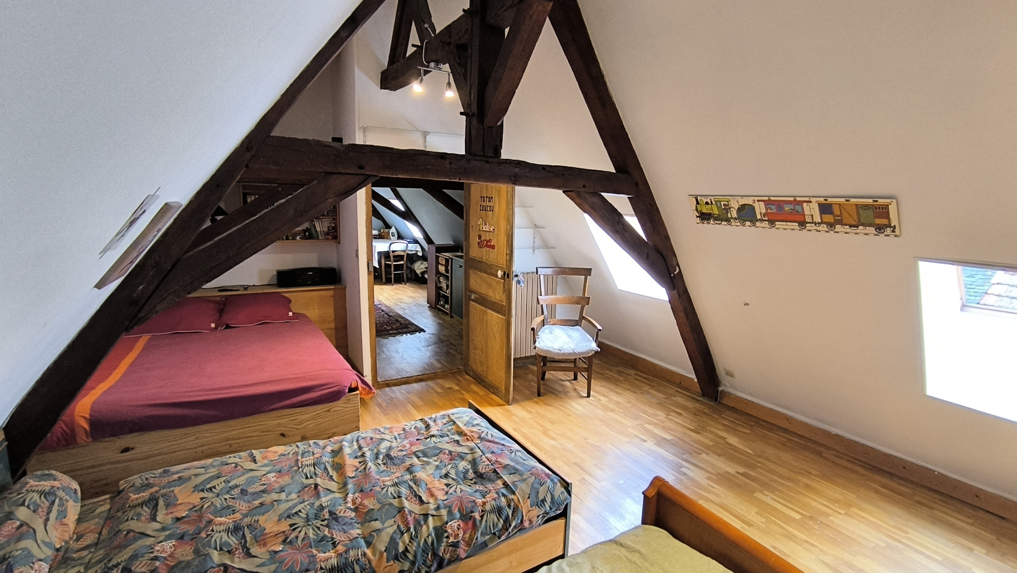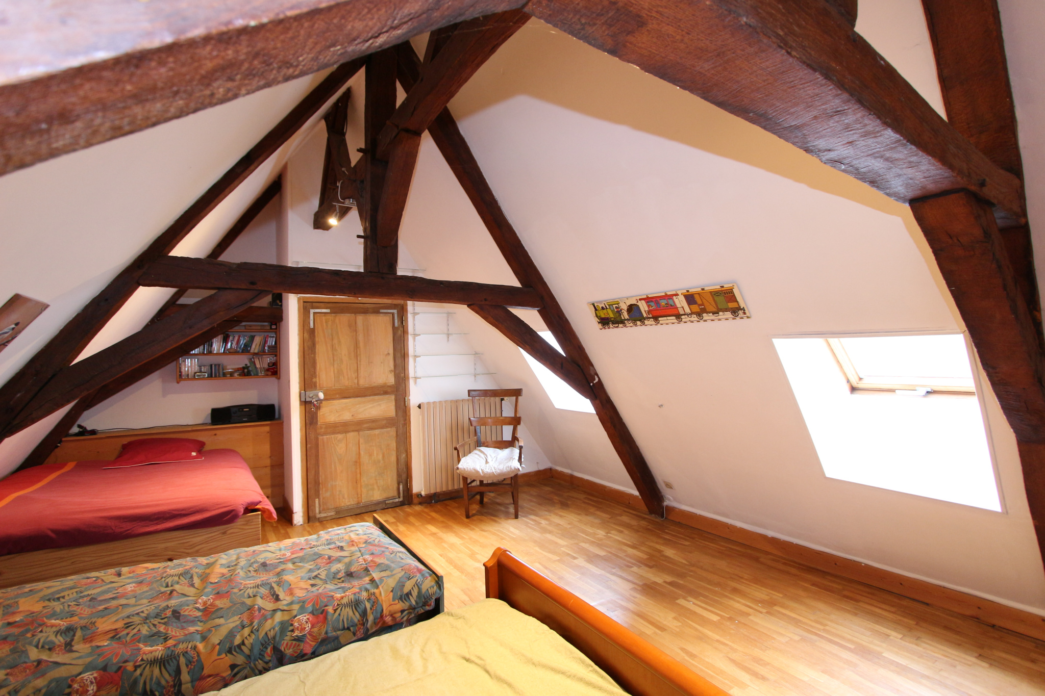 Ce duplex se compose d'une très belle pièce de vie de 35m2, d'un bureau, d'une cuisine, d'une chambre avec son dressing (ou 2 chambres en enfilade), d'une grande chambre pleine de charme avec ses poutres apparentes, d'une salle de bains avec WC, d'un second WC et d'une douche. Pas de charges de copropriété.